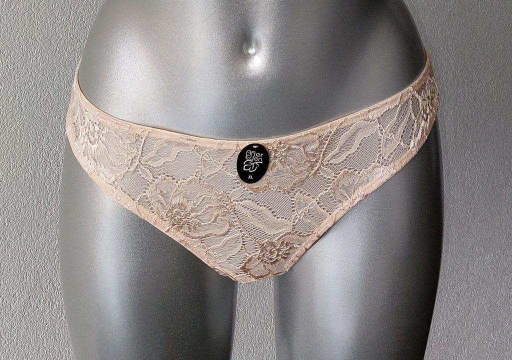 Uit de After Eden Sale collectie de Tempting string.Nog leverbaar in de XL, in een lichte peach kleur .
