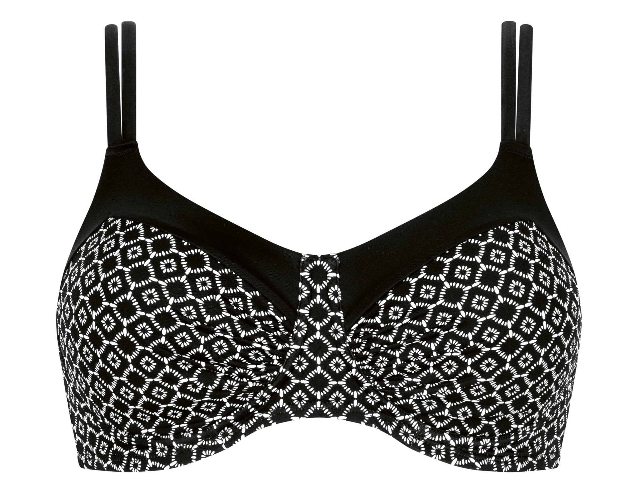 Amoena Ayon chloorbestendige prothese bikinitop zonder beugel zwart print wit