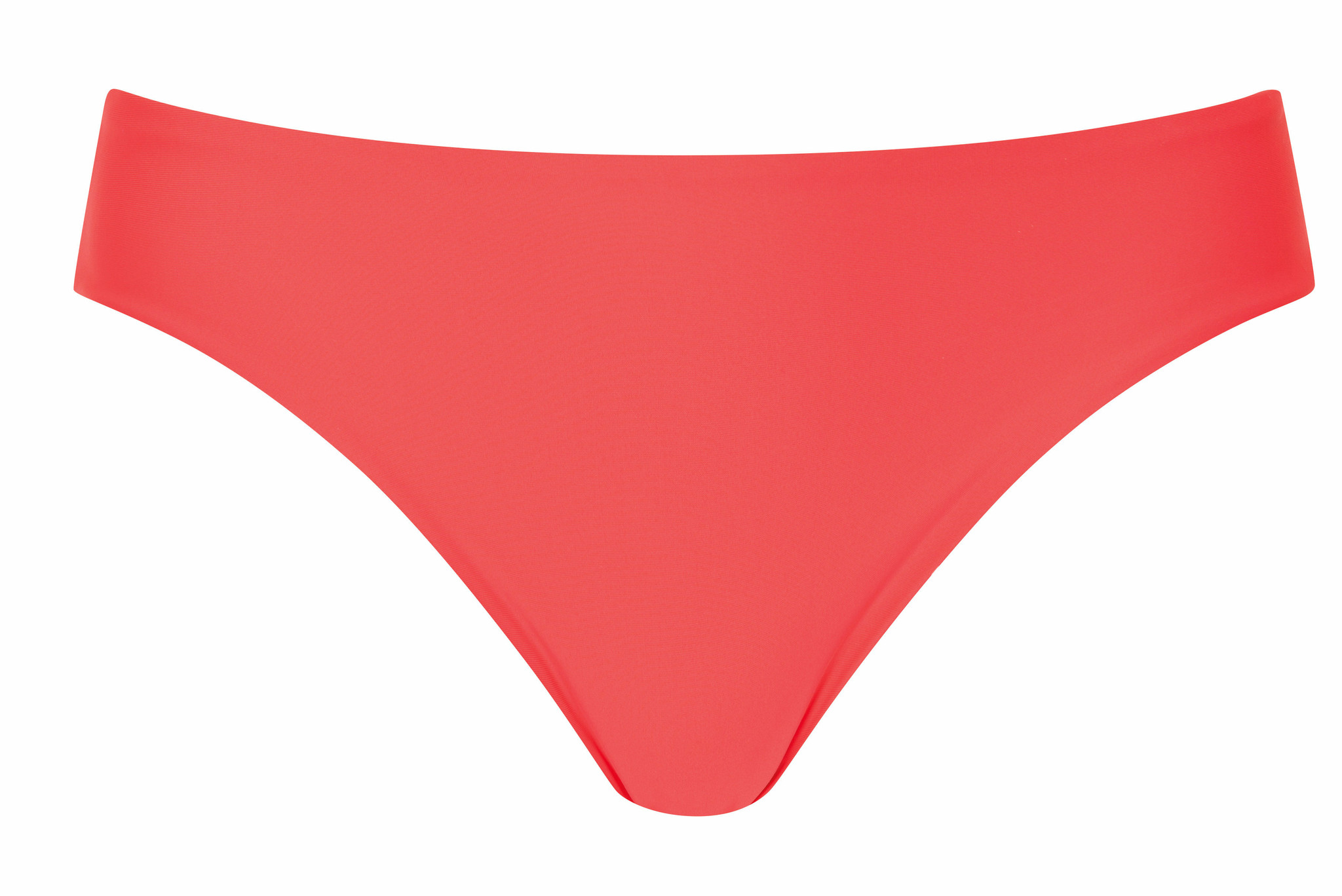 Uit de badmode collectie van Amoena de naadloze Romantic Down Town reversible bikinislip maat 46, te dragen in uni kleur hibiscus of hibiscus met witte polkadots.