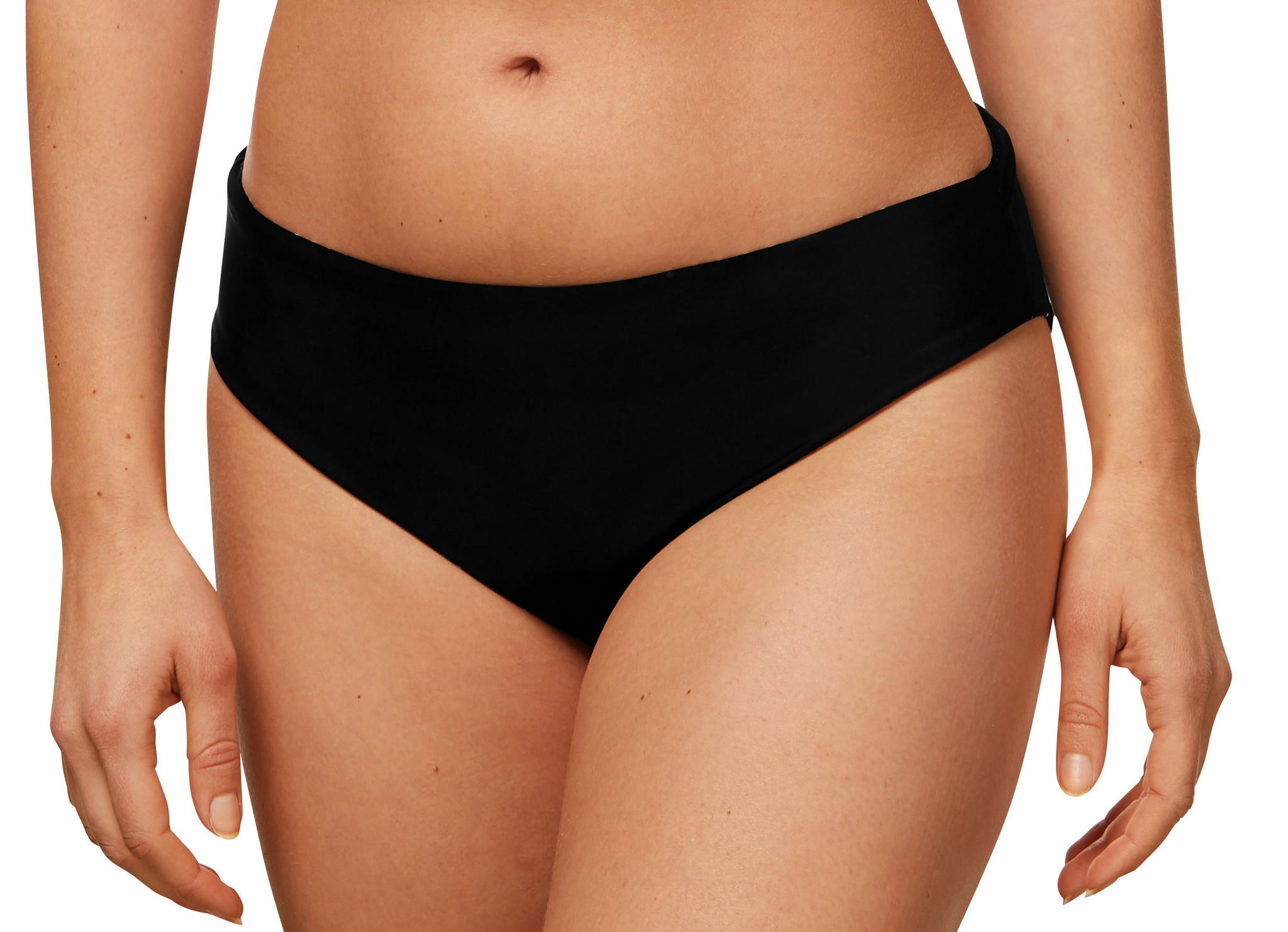 Uit de badmode collectie van Amoena de naadloze Romantic Down Town reversible bikinislip mt 36 of 46 te dragen in uni kleur zwart of de basis kleur zwart met witte polkadots.
