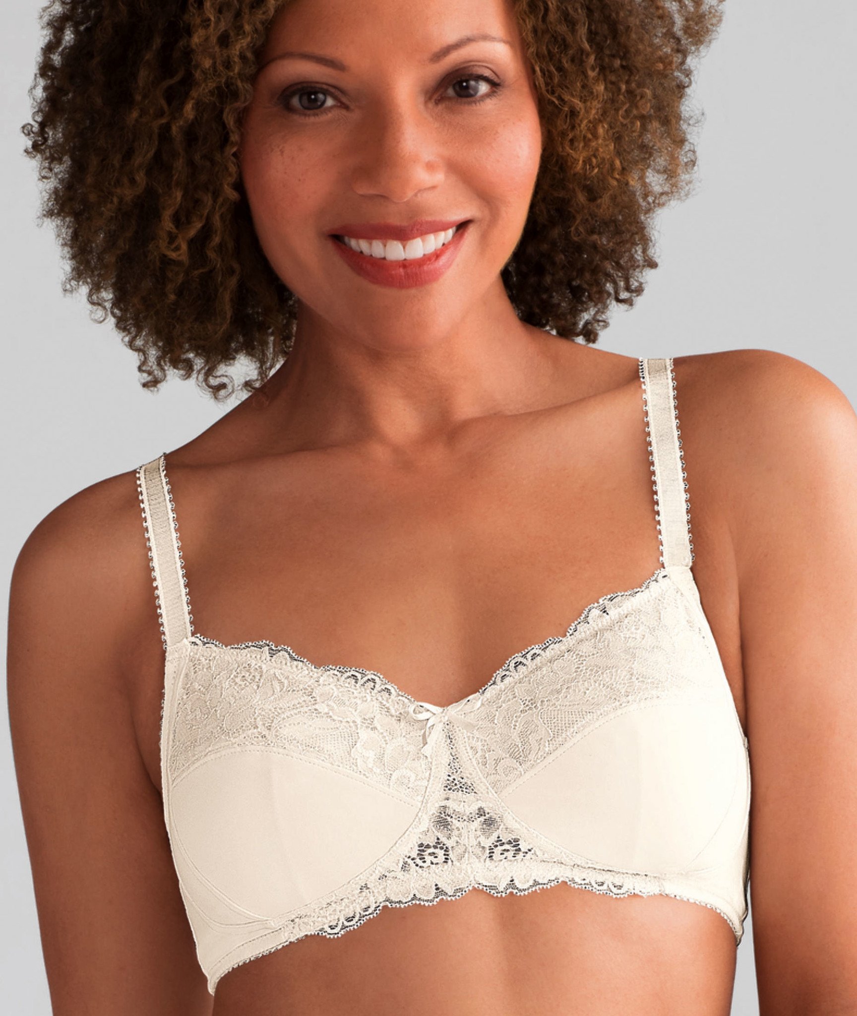 Uit de Amoena Care collectie de verfijnde Lilly prothese Bh zonder beugel in kleur champagne of zwart mt A70.
