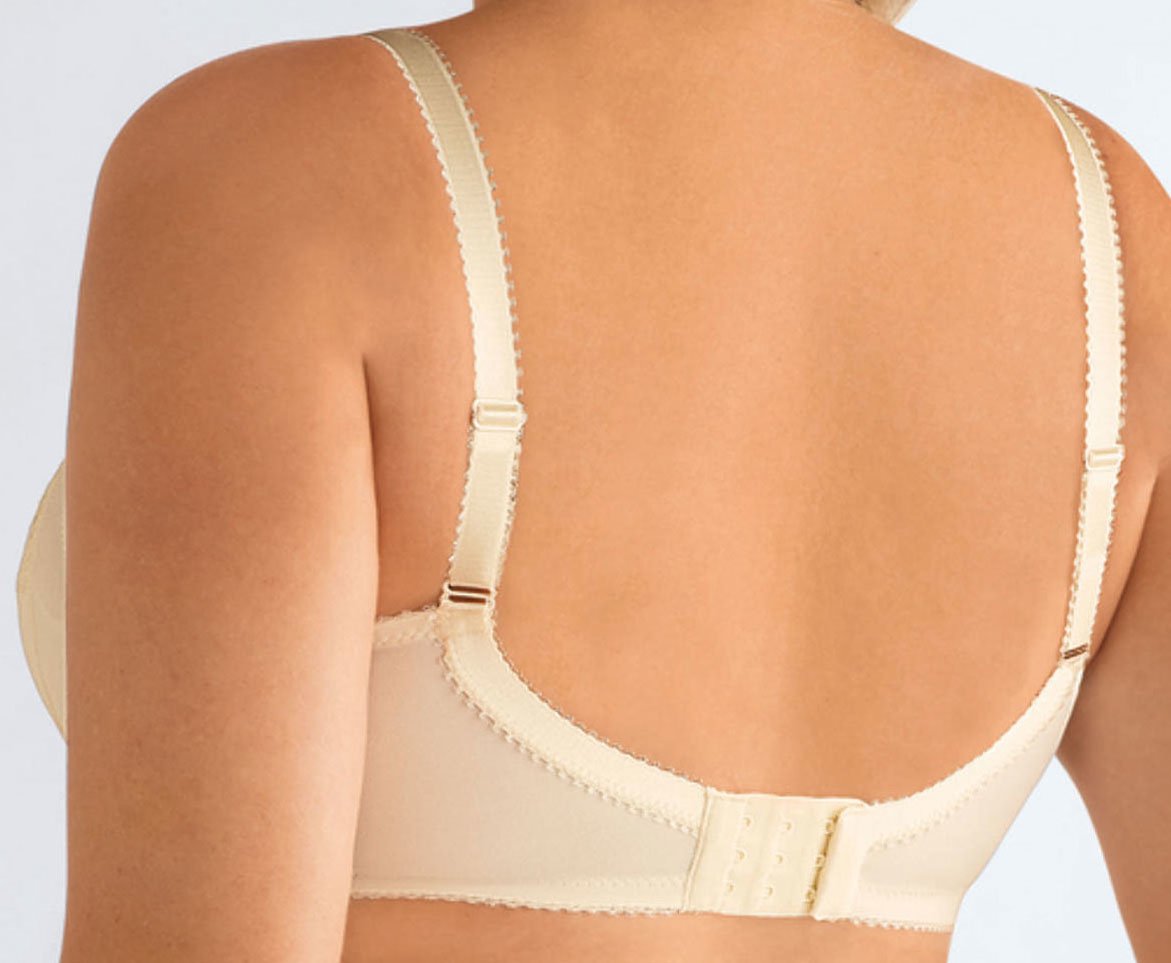 Uit de Amoena Care collectie de verfijnde Lilly prothese Bh zonder beugel in kleur champagne of zwart.Leverbaar in de maten A70, basis kleuren champagne of zwart.