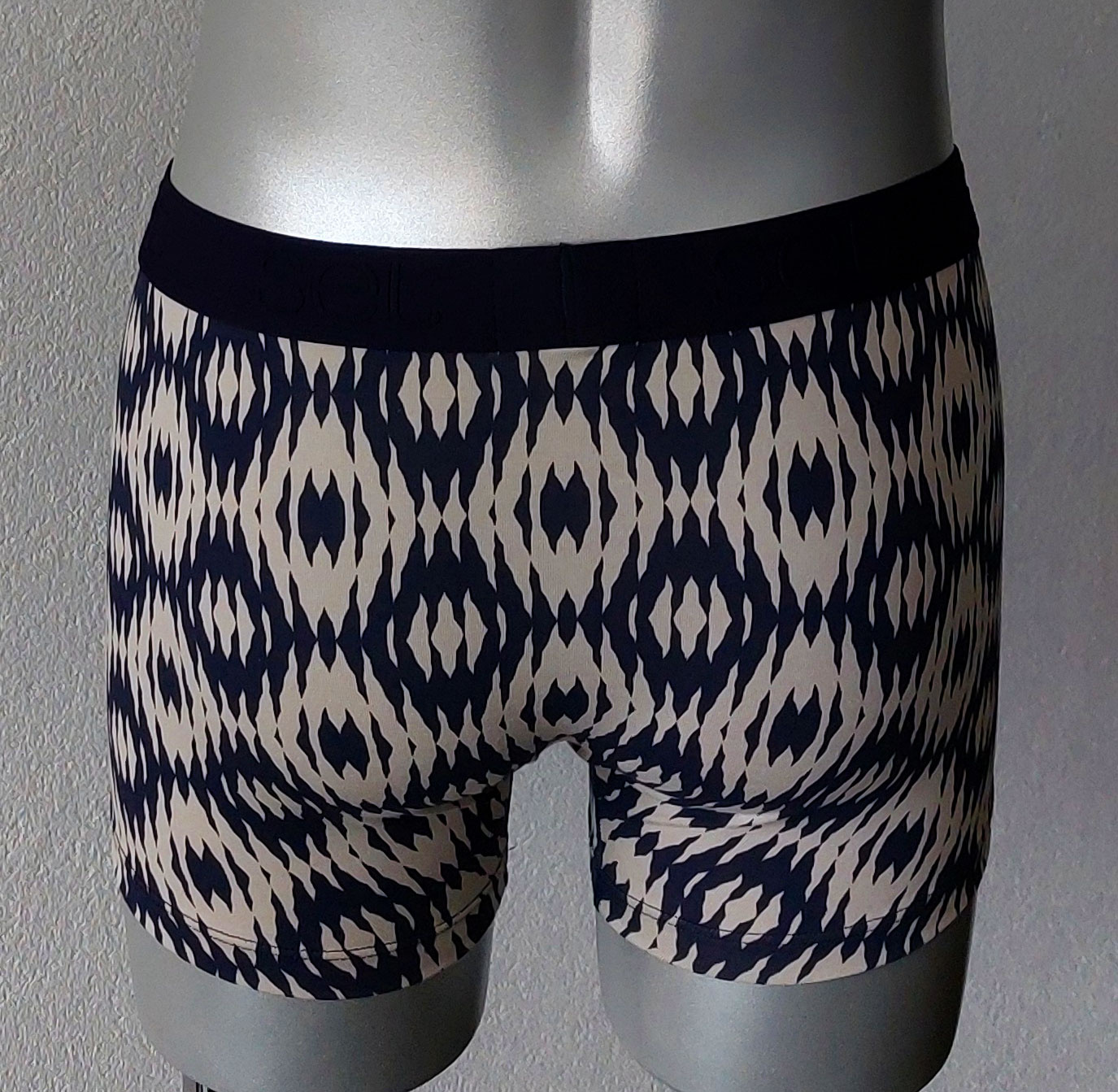 Uit de Avet-Set herencollectie de Fynn katoenen boxershort, de kleuren marine blauw & beige met Inka print gecombineerd, de mt M t/m XL.