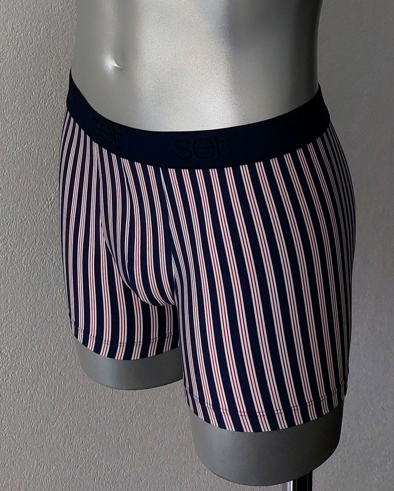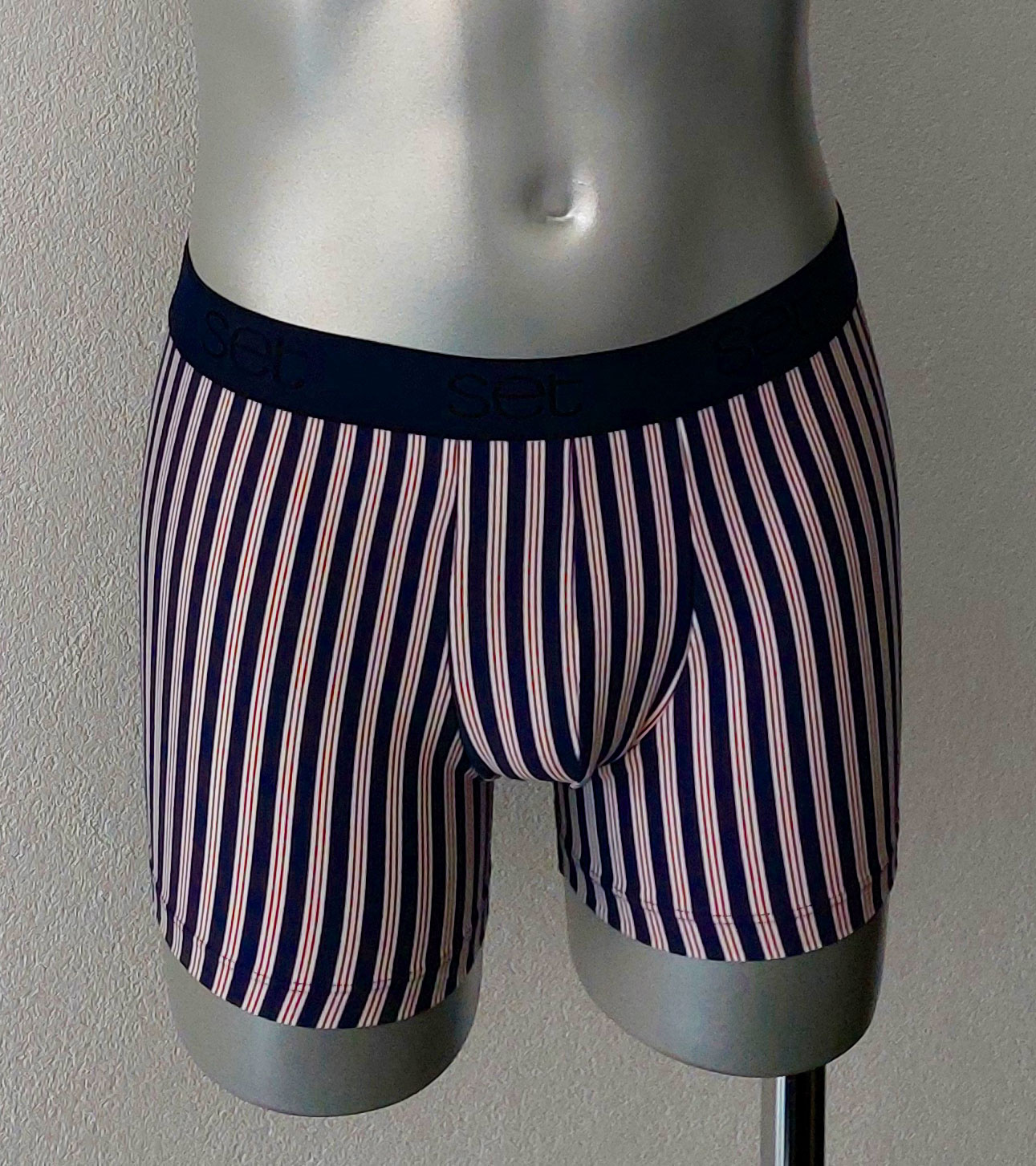Uit de Avet-Set herencollectie de zachte & zeer soepele Sai boxershort, kleur marineblauw met rode & witte streepprint gecombineerd, in mix van katoen & microfaser stof. De maten M t/m XL.