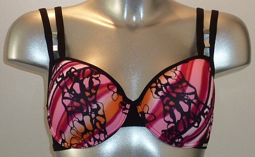 Uit de Sapph Beach Sale collectie  River Bay bikinitop met beugel & voorgevormde cup. De kleur zwart met rainbow print. Leverbaar in de maten E75 & E80.