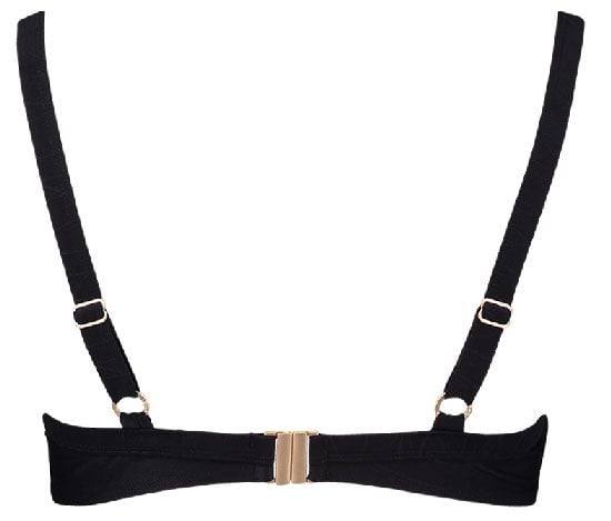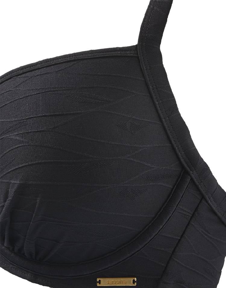 Uit de Sapph Beach collectie de Tioman Island bikinitop met beugel & voorgevormde cup, een bikinitop met name geschikt voor de dame met een maatje meer. Leverbaar in de maten, F80 t/m G85 de kleur zwart met in stof meegeweven reliëf structuur.