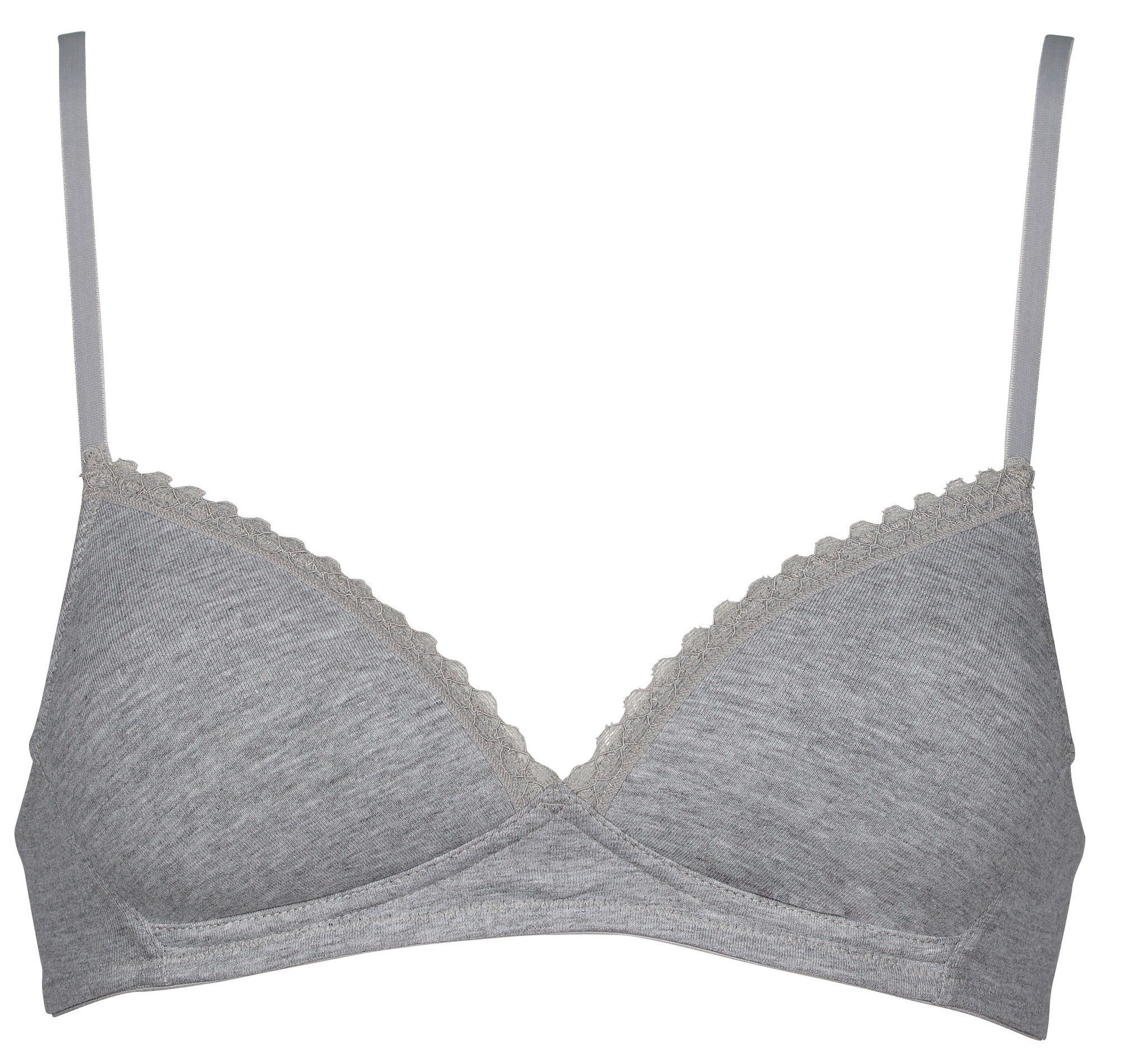Uit de Boobs & Bloomers collectie deze tweedelige Eldoy katoenen Bh set zonder beugel & licht voorgevormde cup mt AA65 t/m C85 de kleur grijs melee & pink.