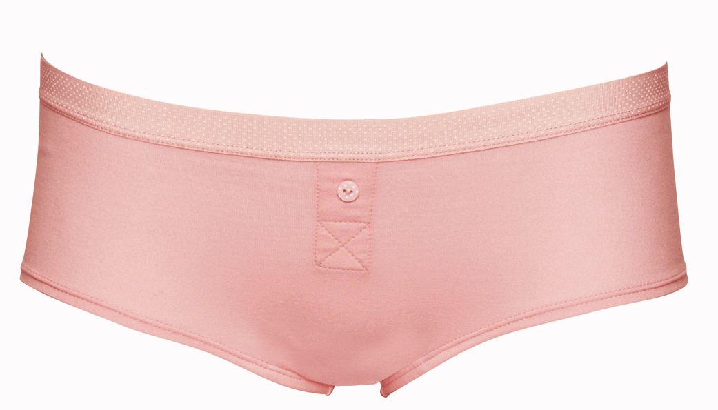 Uit de SALE collectie van Boobs & Bloomers de katoenen Audrey heup boxershort.De kleur pink met aan bovenkant elastisch tailleband een kleine wit stipprintje & sier knoopje. Leverbaar in de maat 152 of 164.