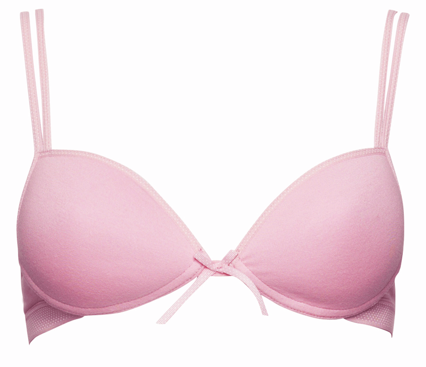 Uit basis collectie van Boobs & Bloomers de katoenen Audrey Bh zonder beugel & licht voorgevormde cup hoofdkleur roze met wit stip printje maten A80 of B80, licht roze & mt A80 of B75, pink kleur.