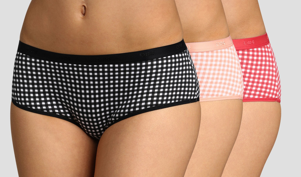 Uit de basis collectie van Dim een drie delig coton stretch boxershort set in leuke vichey ruit de kleuren zwart,zalm & rood. De maten 34/36-S.