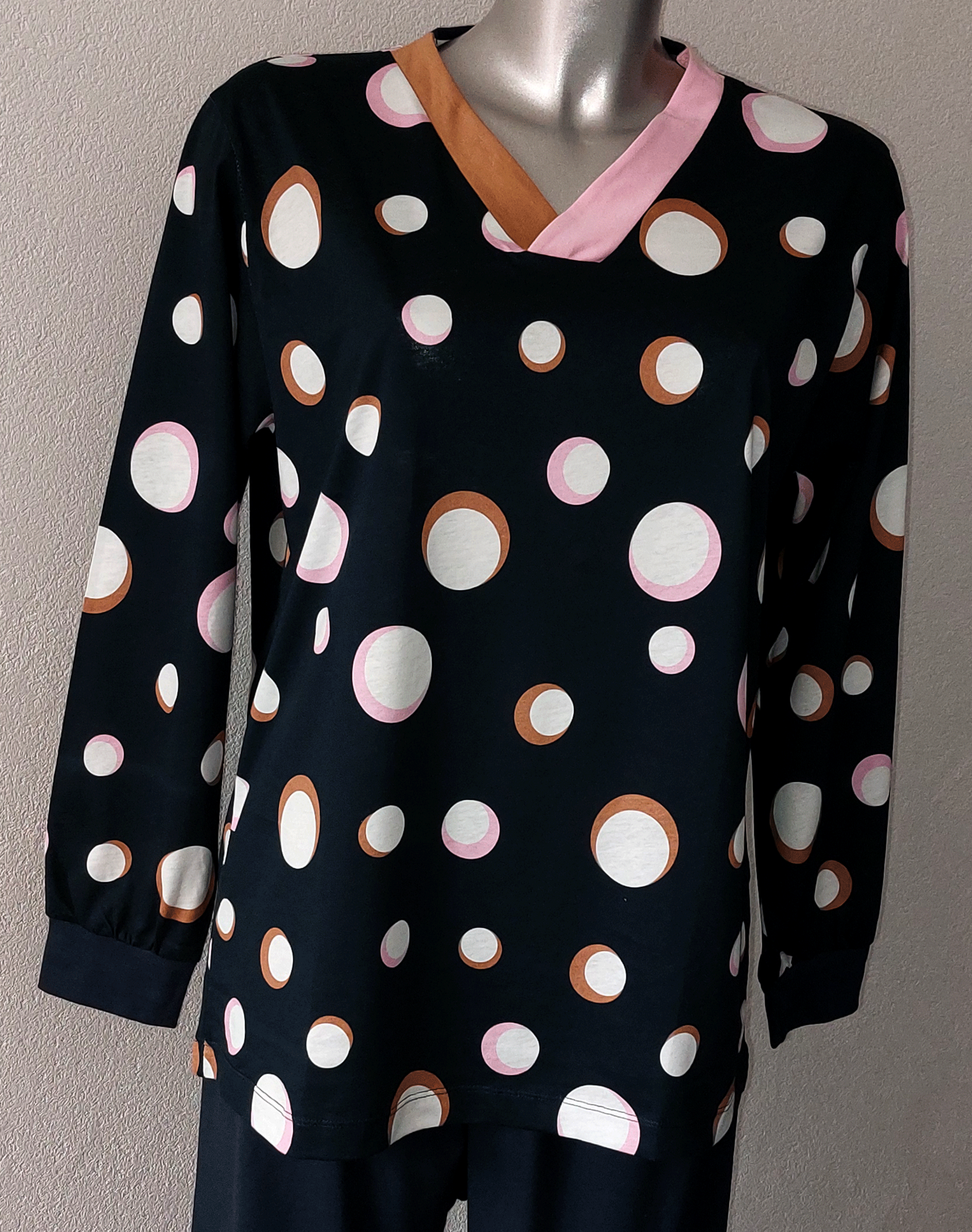 Lunatex Dames katoenen pyjama marineblauw gecombineerd met print dots mt 42-L