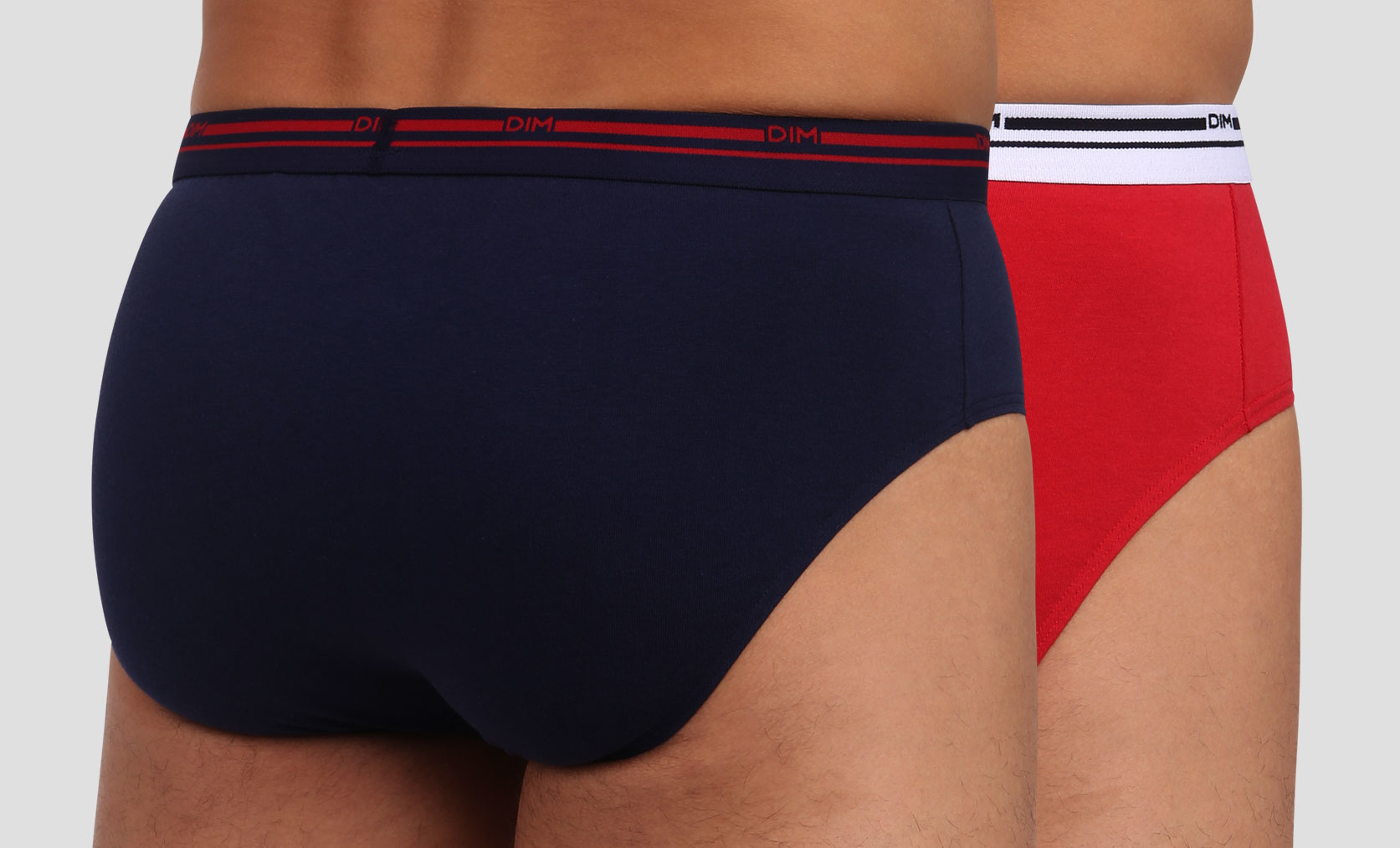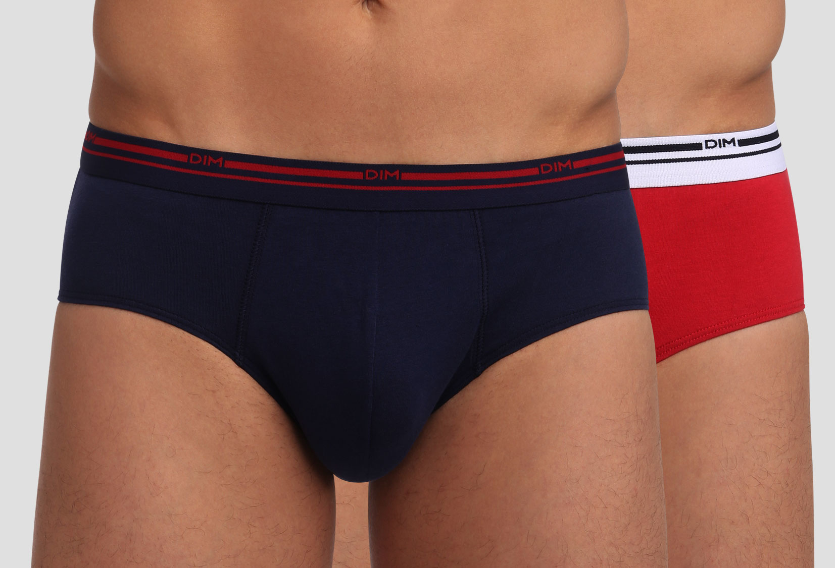 Uit de Dim collectie het tweedelige Classic Colors Cotton Stretch slipset de maten M t/m XL de kleurencombinatie marineblauw & rood.
