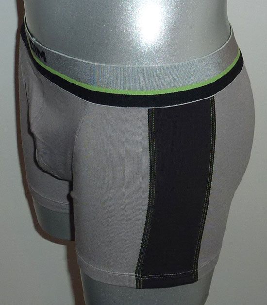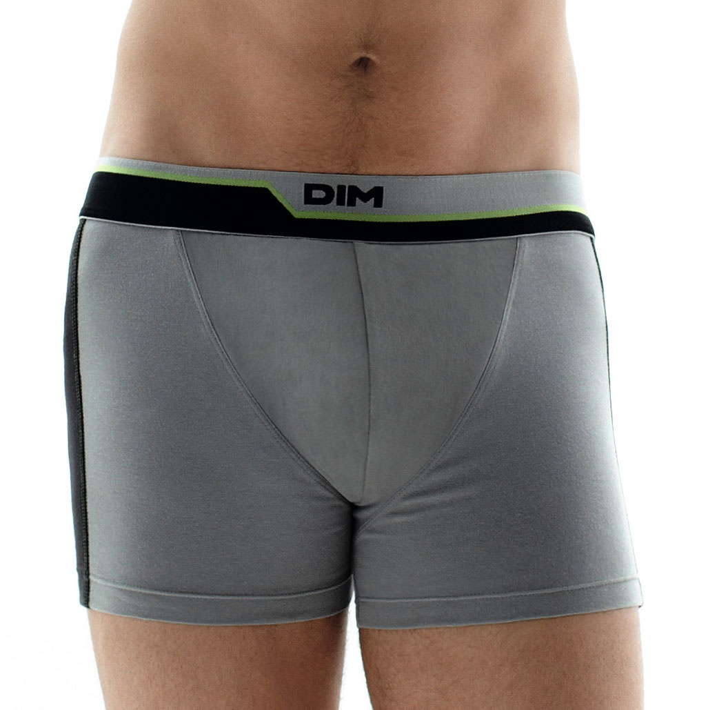 Uit de Sale collectie van Dim de Dynamix boxershort met een hoog katoen gehalte in comfortabele cotton stretch kwaliteit. Nog leverbaar in mt L & XL in kleur grijs met bies limegroen of mt M in kleur zwart met bies oranje