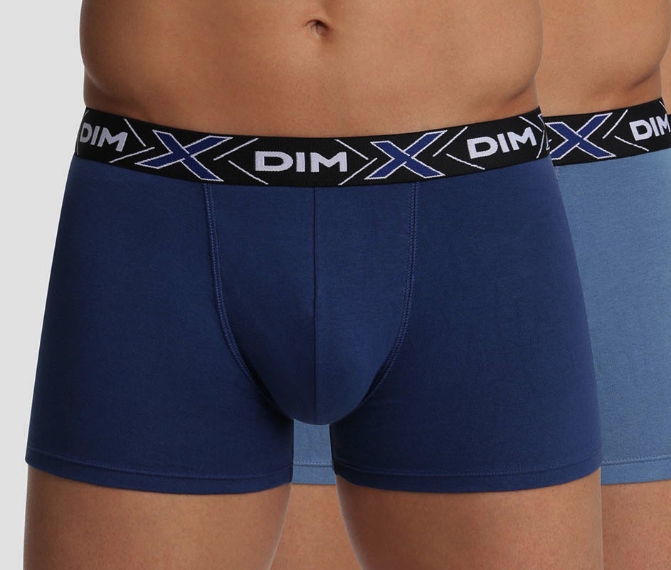 Uit de collectie van Dim X-temp het tweedelige cotton stretch active temperatuur regulerende boxershortset.Maten M of XXL de kleurencombinatie, navy-blue .