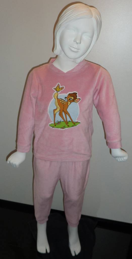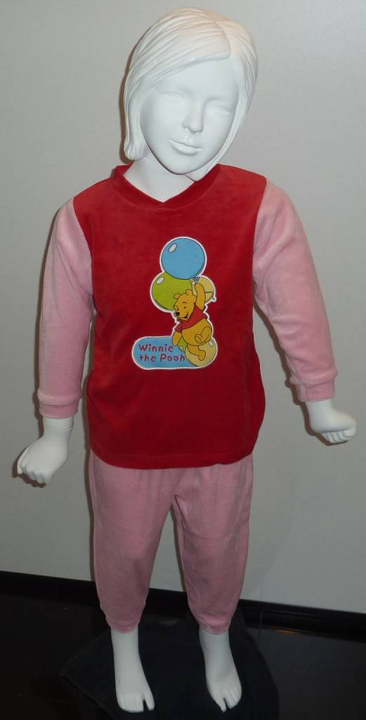 Disney velours meisjespyjama in perfecte prijs/kwaliteit verhouding, met afbeelding in stof uitgevoerd van Bambi de kleur roze maat80 of Winnie the Pooh in kleur rood de maten 80 t/m 104.
