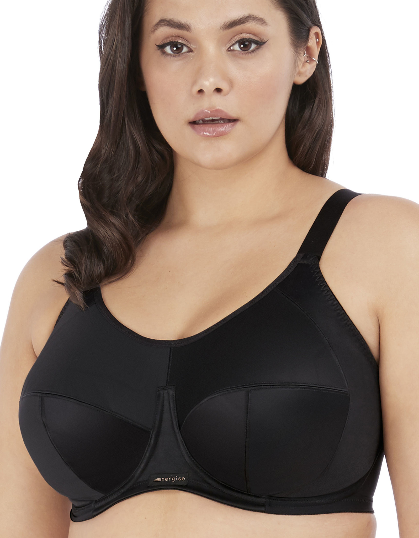 Uit Elomi collectie de Energise (Sport) Bh met beugel een stevig model Bh voor de dame met een maatje meer. Kleur zwart . De maten D85 t/m E105, F80 t/m H100, I75 t/m J100 & mt K75 t/m K95 & mt L75 t/m M90 & N75 t/m O85.