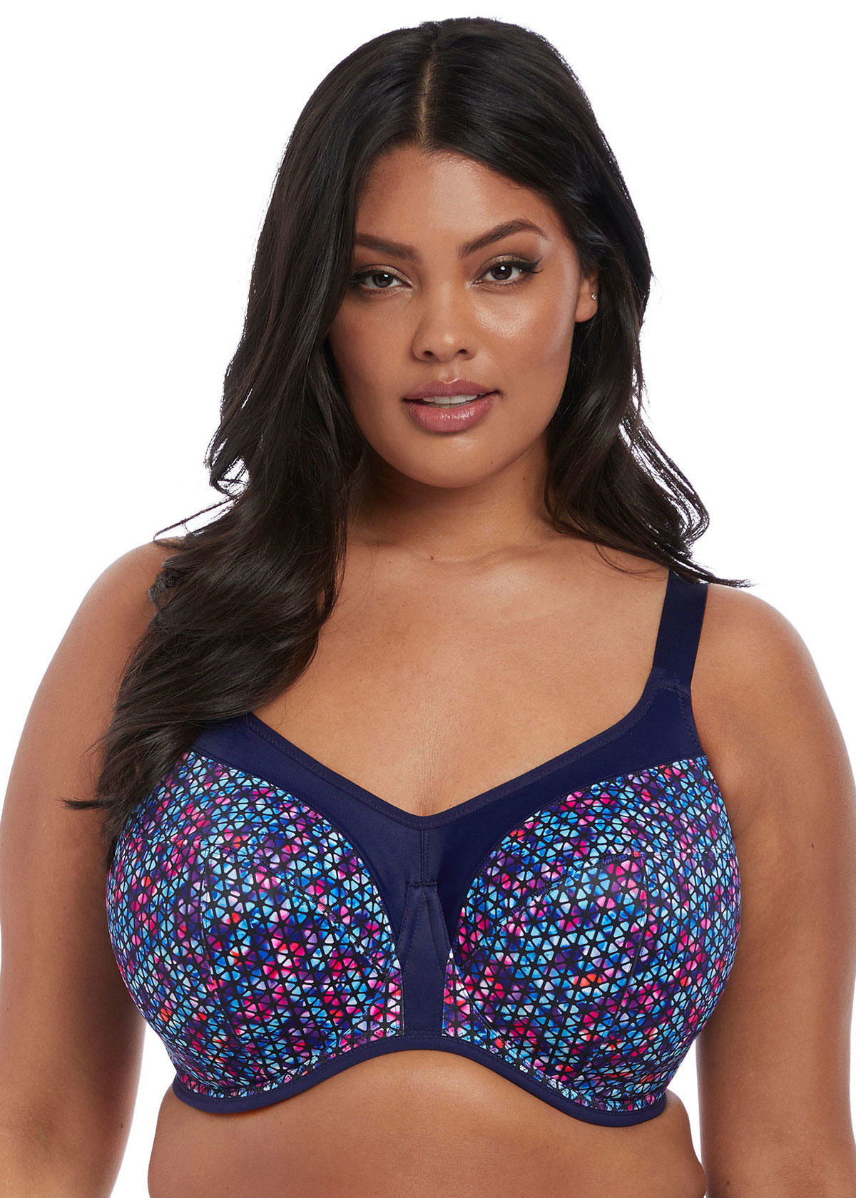 Uit Elomi collectie de Energise Sport Bh met beugel een stevig model Bh voor de dame met een maatje meer. Kleur navy gecombineerd met geoprint . De maten D85 t/m E105, F80 t/m H100, I75 t/m J100 & mt K75 t/m K95 & mt L75 t/m M90.