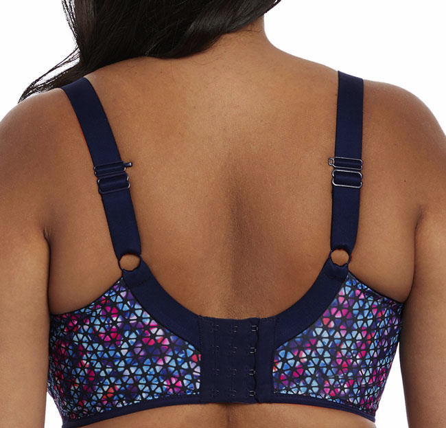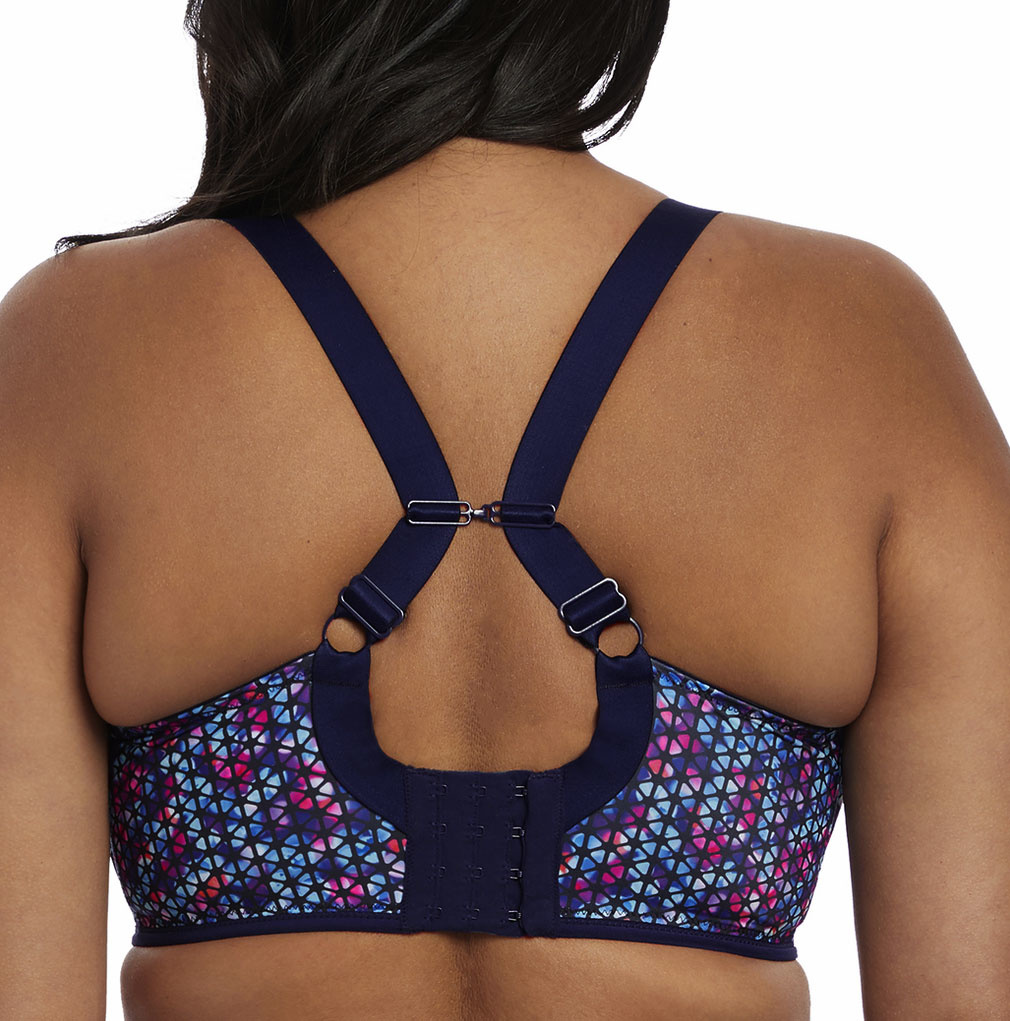 Uit de Elomi collectie de Energise (Sport) Bh met een bredere beugel speciaal voor de dame met een maatje meer. Leverbaar in de maten D85 t/m E105, mt F80 t/m H100, mt I75 t/m J100, K75 t/m K95, mt L75 t/m M90 de kleur navy gecombineerd met geoprint.