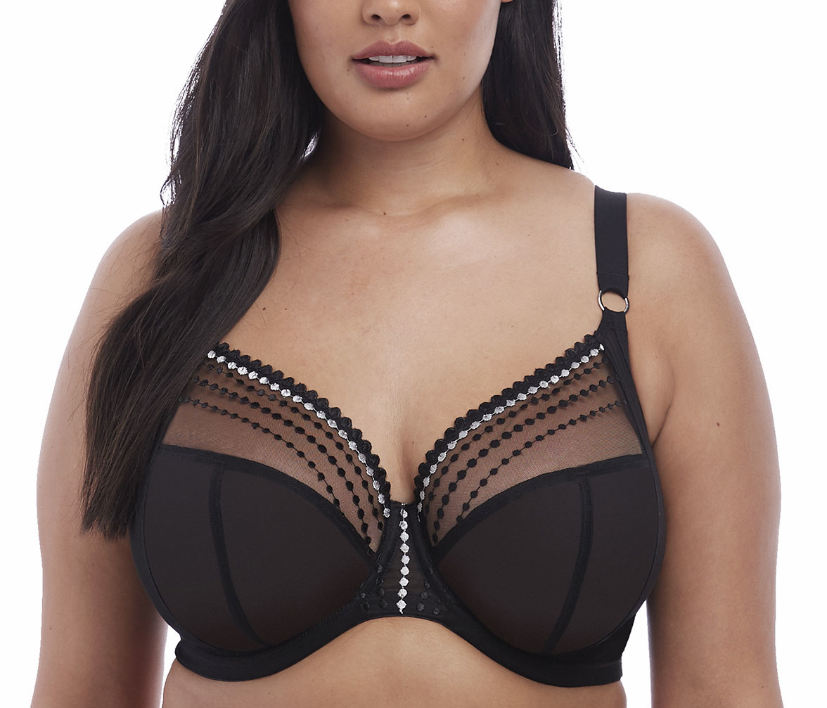 Nieuw uit de Elomi collectie voor de dame met een maatje meer de stevige Matilda Bh met beugel & plunge effect kleur zwart met zilverkleurig borduursel.