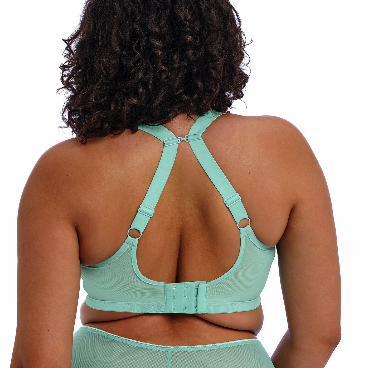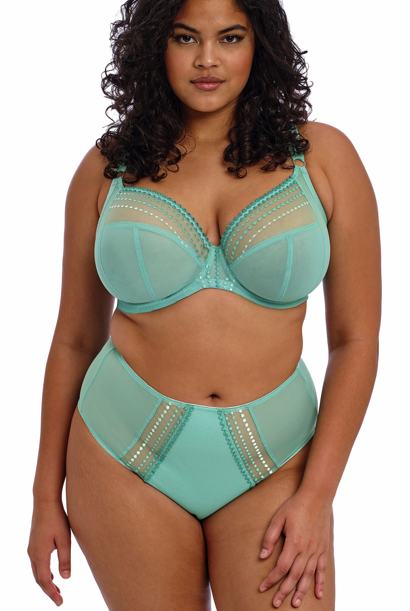 Uit de Elomi collectie voor de dame met een maatje meer de stevige Matilda Bh met beugel & plunge effect kleur jade, gecombineerd met borduursel.Maten E105, F100 of G100, nog leverbaar.
