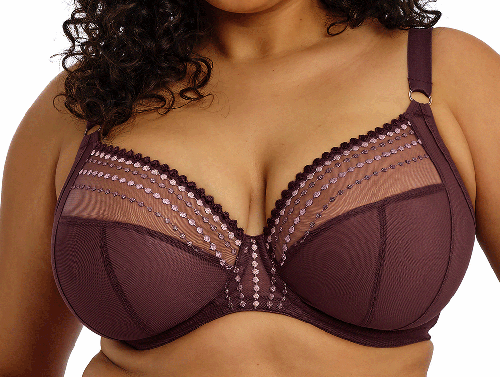 Uit de najaars collectie van Elomi de stevige Matilda Bh met beugel & plunge effect voor de dame met een maatje meer de kleur sugar plum (diepe rijke paarse tint), met verfijnt borduursel kleur sparkle pink.Maten E80 t/m N90.