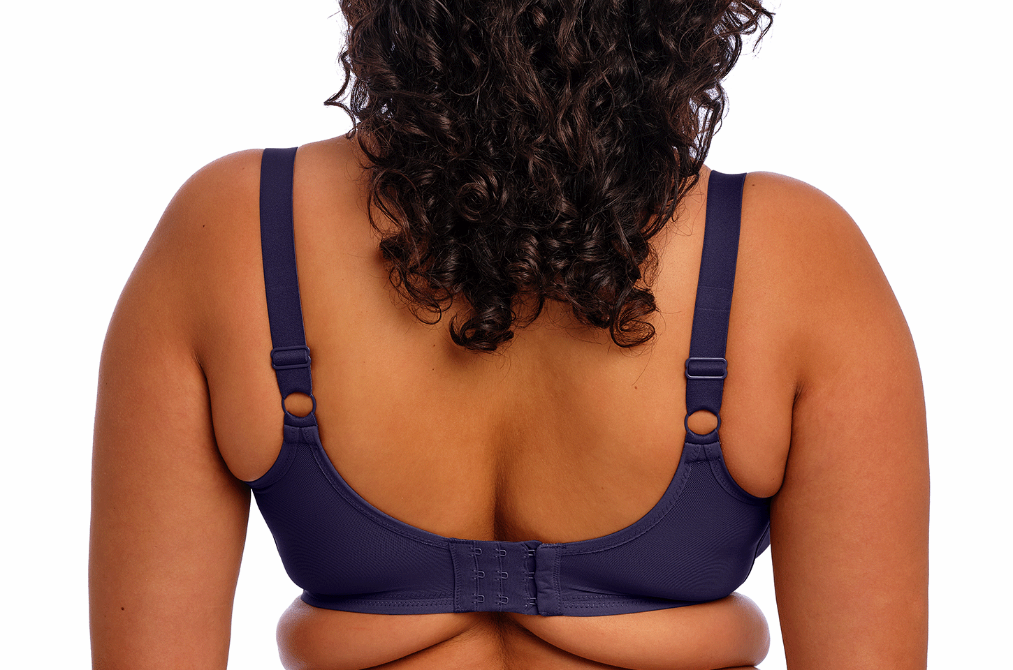 Elomi gebruikt een bredere beugel; dit heeft als fijne bijkomstigheid dat deze comfortabel ruimer onder de arm doorloopt en niet hinderlijk tegen de borst aanduwt. De ronde cups zijn niet‑rekbaar en gemaakt van ongevoerde, ultralichte Aerocool‑stof die uw huid koel en droog houdt. De bovenrand is transparant en afgewerkt met elastiek zodat de bh mooi tegen uw huid aansluit.