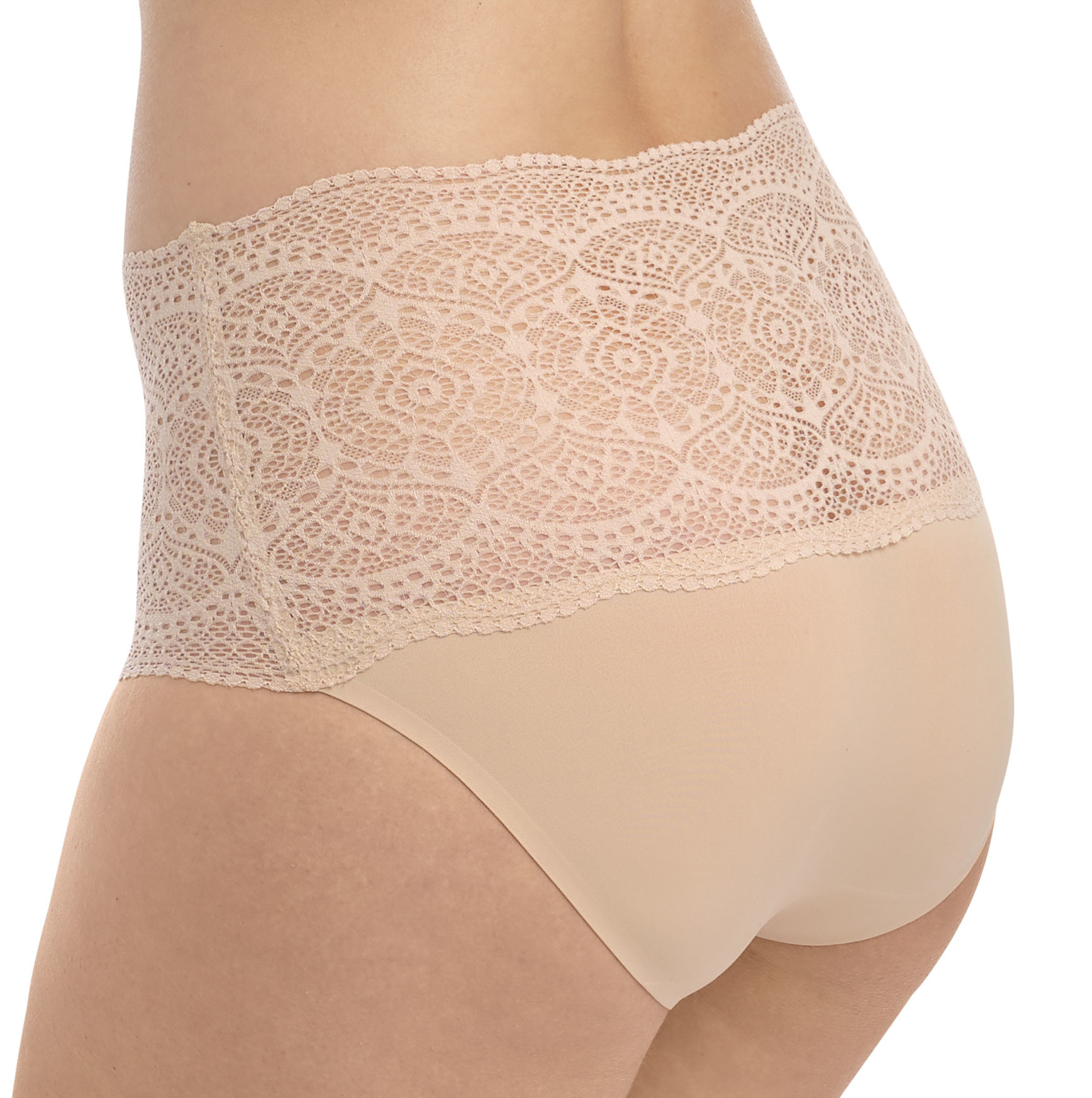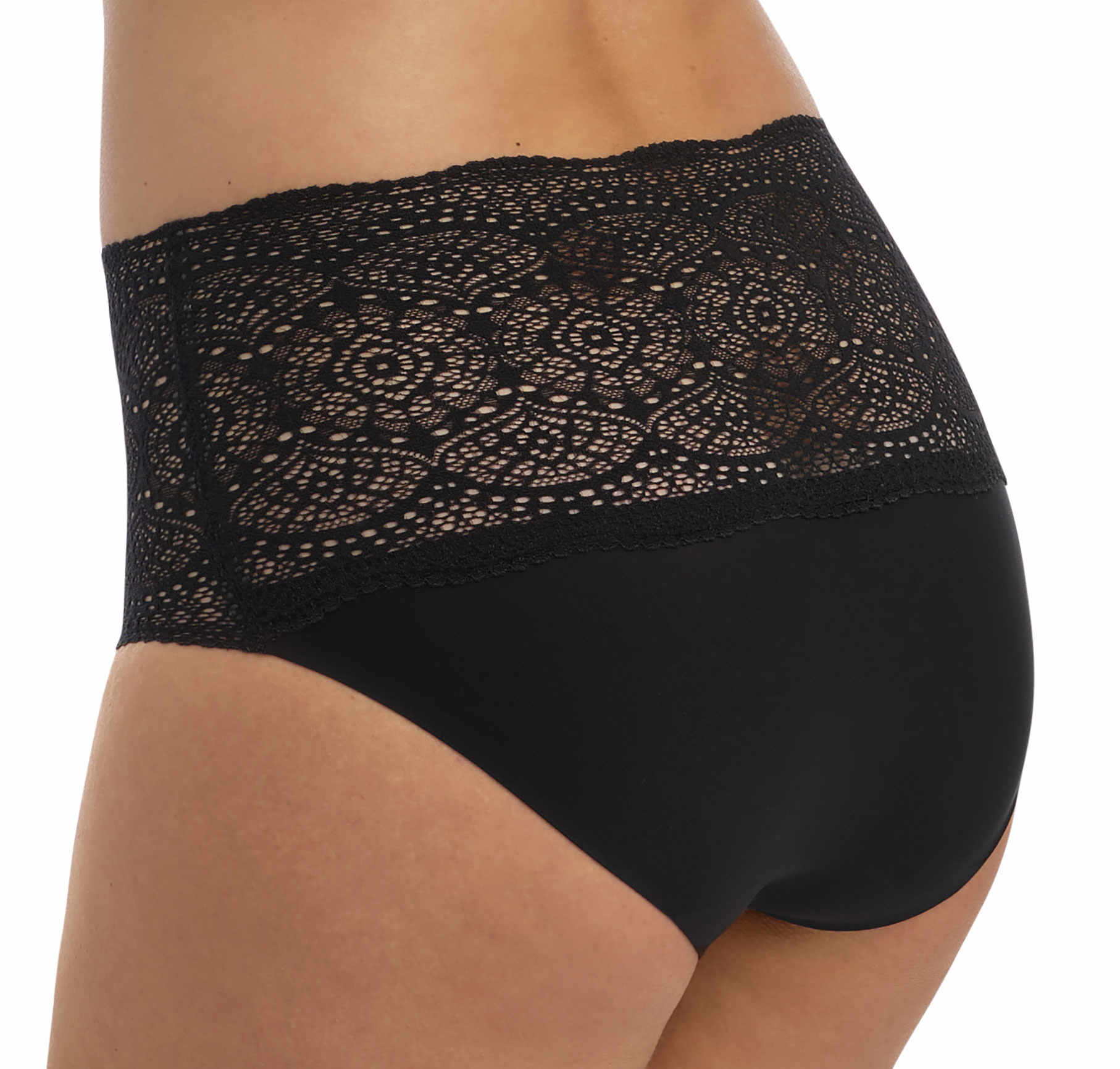 Uit de collectie van Fantasie de naadloze slip met breed zacht elastisch borduursel de kleur ivoor,zwart of huid de maataanduiding one size past mt 38 t/m 44.