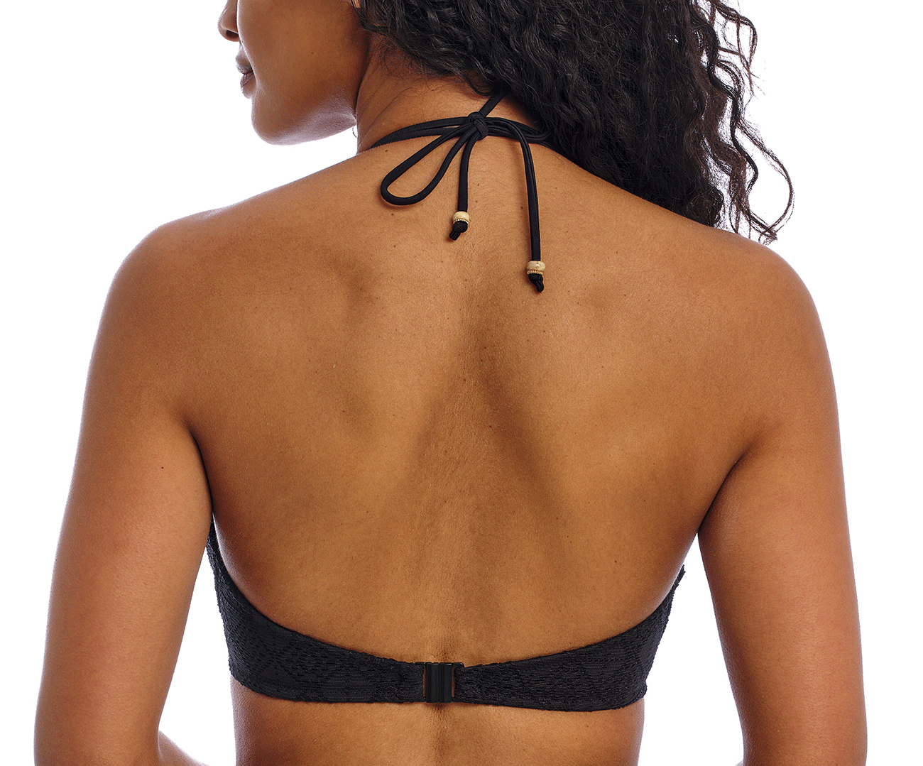 Uit de Freya beach collectie de nomad nights stevige halter bikinitop met beugel,de maten D70 t/m F85, mt G70 t/m G80 of mt H70 & H75, basis kleur zwart.