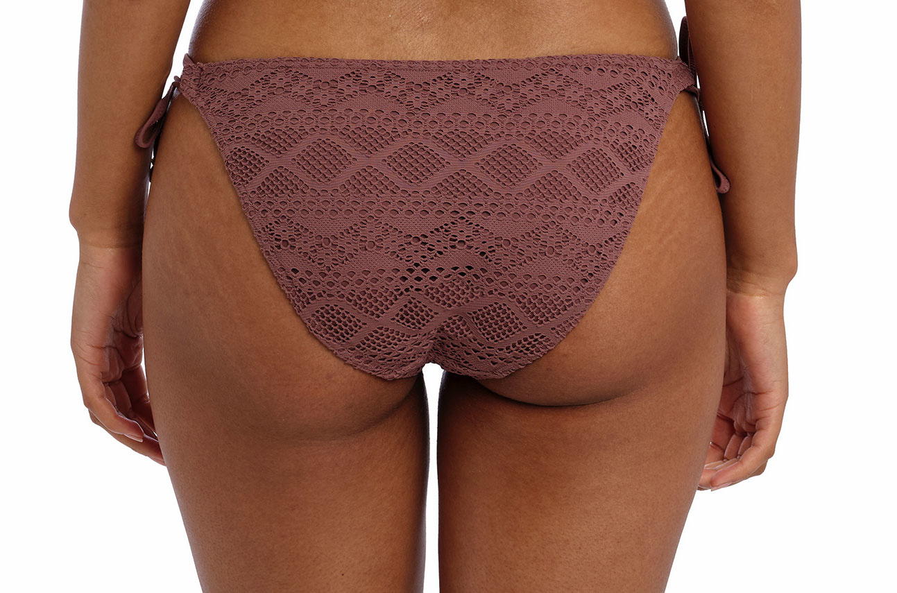 Freya Sundance bikinislip lage model met sierstrikjes kleur Nutmeg de mt 38-S, valt als een mt 36 t/m 44-XL- valt als mt L-42