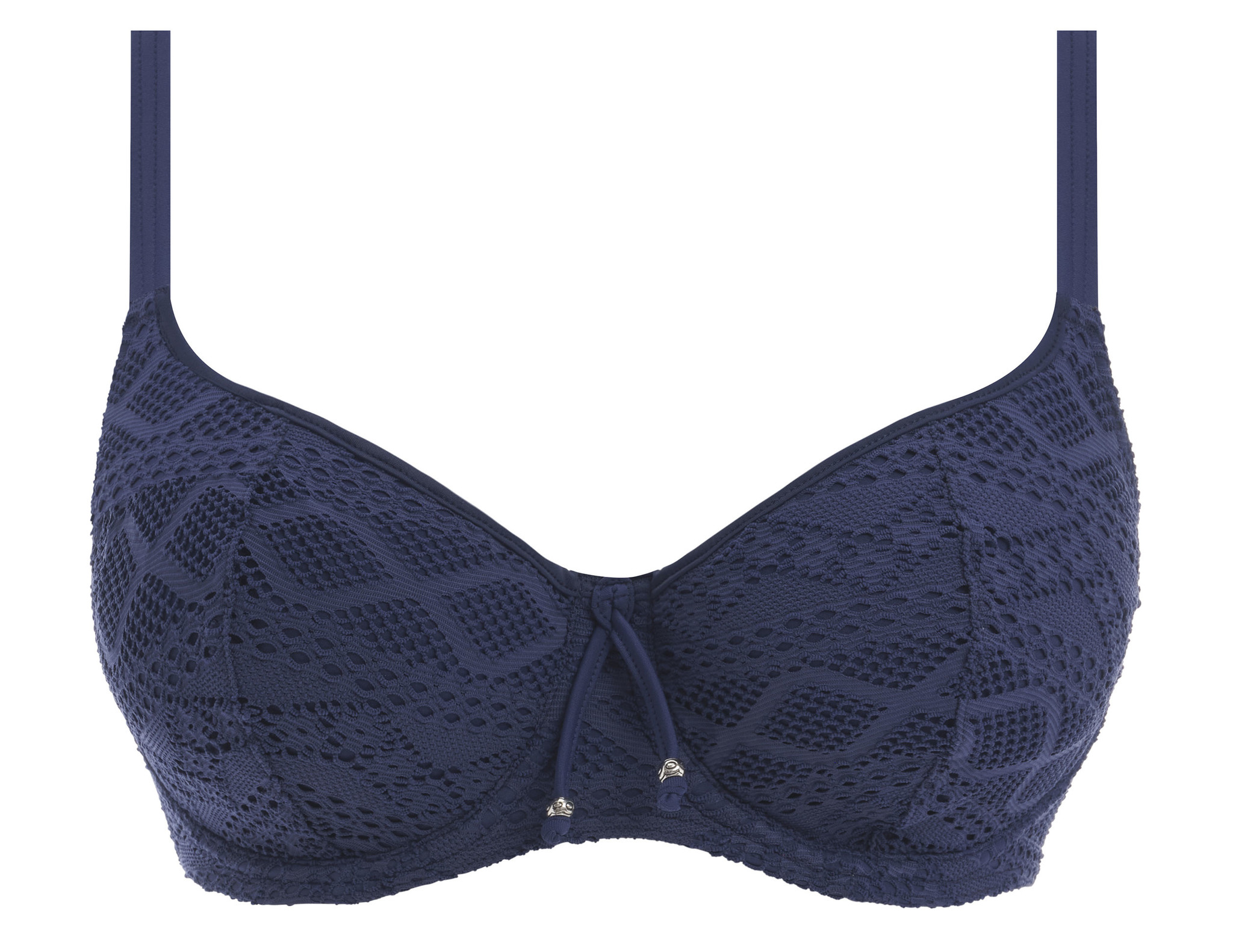 Uit de badmode collectie van Freya de Sundance bikinitop met beugel & licht voorgevormde cups de mt E75, F85 of mt G85, nog leverbaar, in kleur denim blue.