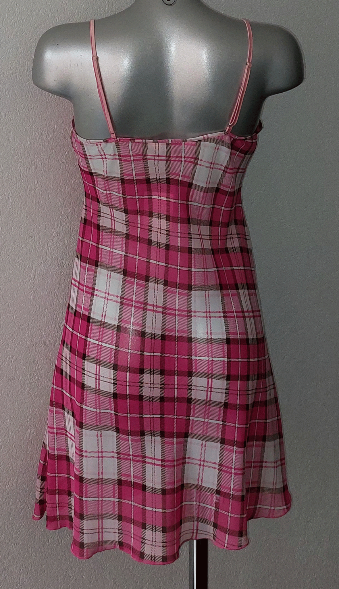 LingaDore Silena chiffon nachtjurkje ruitprint kleur pink & roze, mt 40-M- valt als mt 38-S