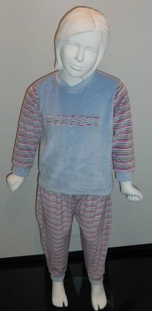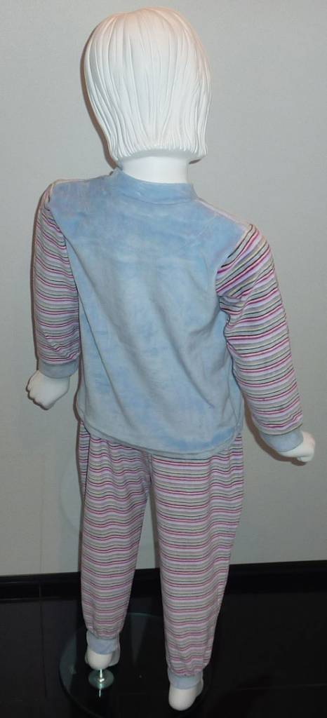 Uit de Lunatex collectie zachte velours meisjespyjama Katy. De kleur blue gecombineerd met streepprint de maten 98 & 116.