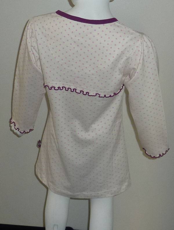 • De kleur ivoor met sterrenprint in de kleur pink, afgebiesd met de kleur purple.