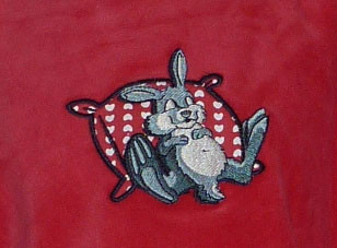 Uit Lunatex collectie Fenna velours meisjespyjama. Jasje in een mooie stevige velours kwaliteit, met ronde in uni kleur cerise met aan voorzijde een stoffen applicatie met hierop een slapend konijntje.De mt 152.