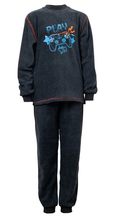 Van Lunatex uit de Outfitter collectie de Donovan zachte coral fleece jongenspyjama in kleur antracietgrijs de mt 128 t/m 152