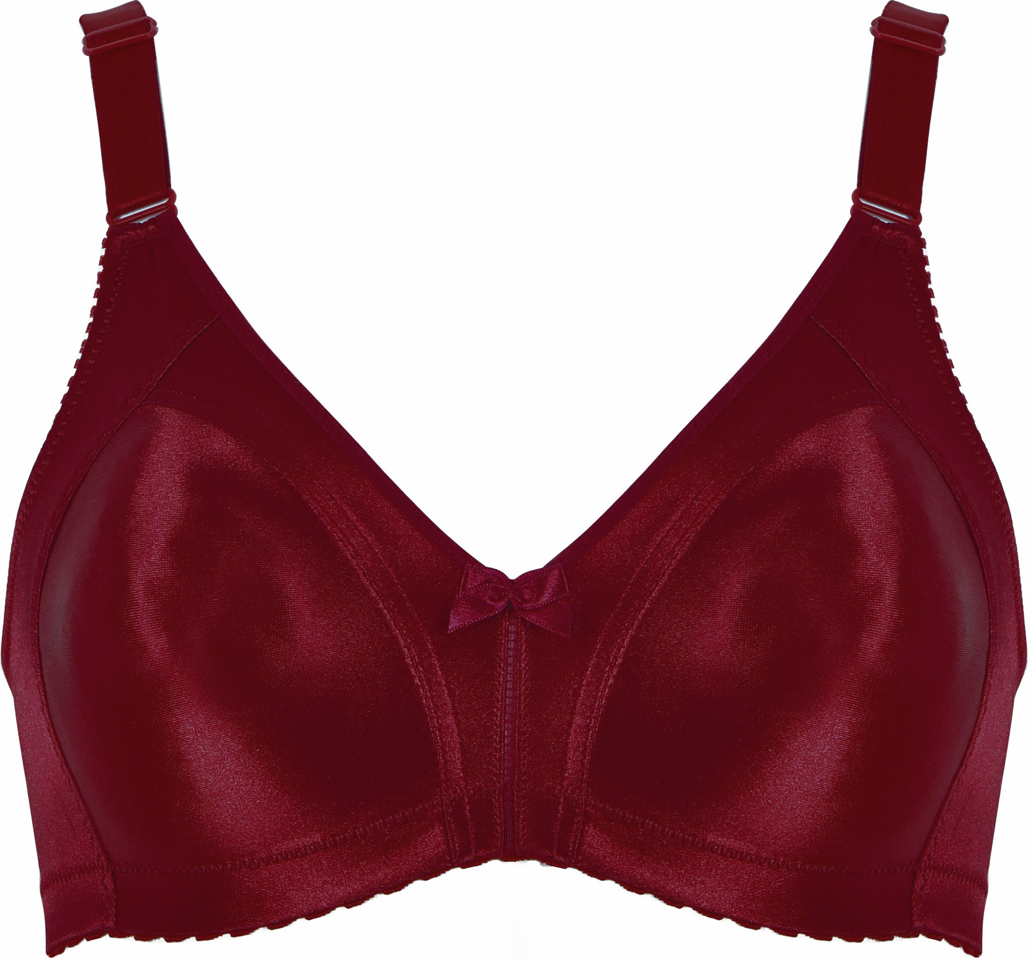 Comfortabele minimizer bh zonder beugel van Naturana Faylinne in Ruby Red. Mooie rode kleur geschikt onder lichte kleding. Maten B85, D105 en E75. Gladde cup, zachte onderband en vooraan verstelbare schouderbandjes. €5 korting bij €39,95 en €15 bij €99,95