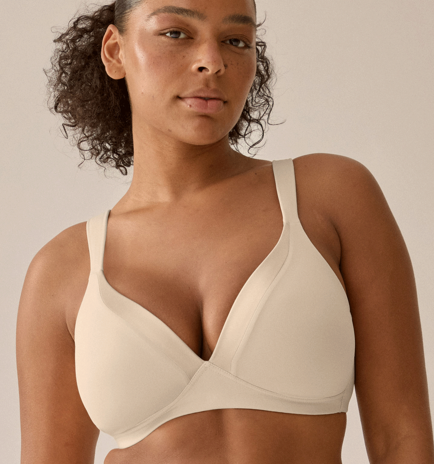 Een comfortabel T‑shirt BH‑model zonder beugel, met een voorgevormde, naadloze microfaser cup en een subtiele satijnbies langs de bovenrand. Een fijne BH voor dagelijks gebruik, met een mooie prijs‑kwaliteitverhouding.