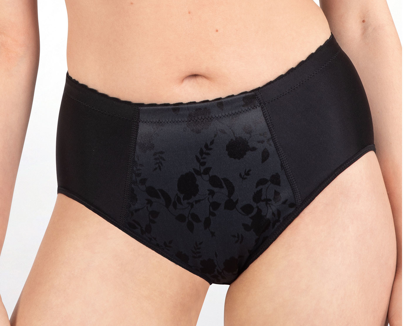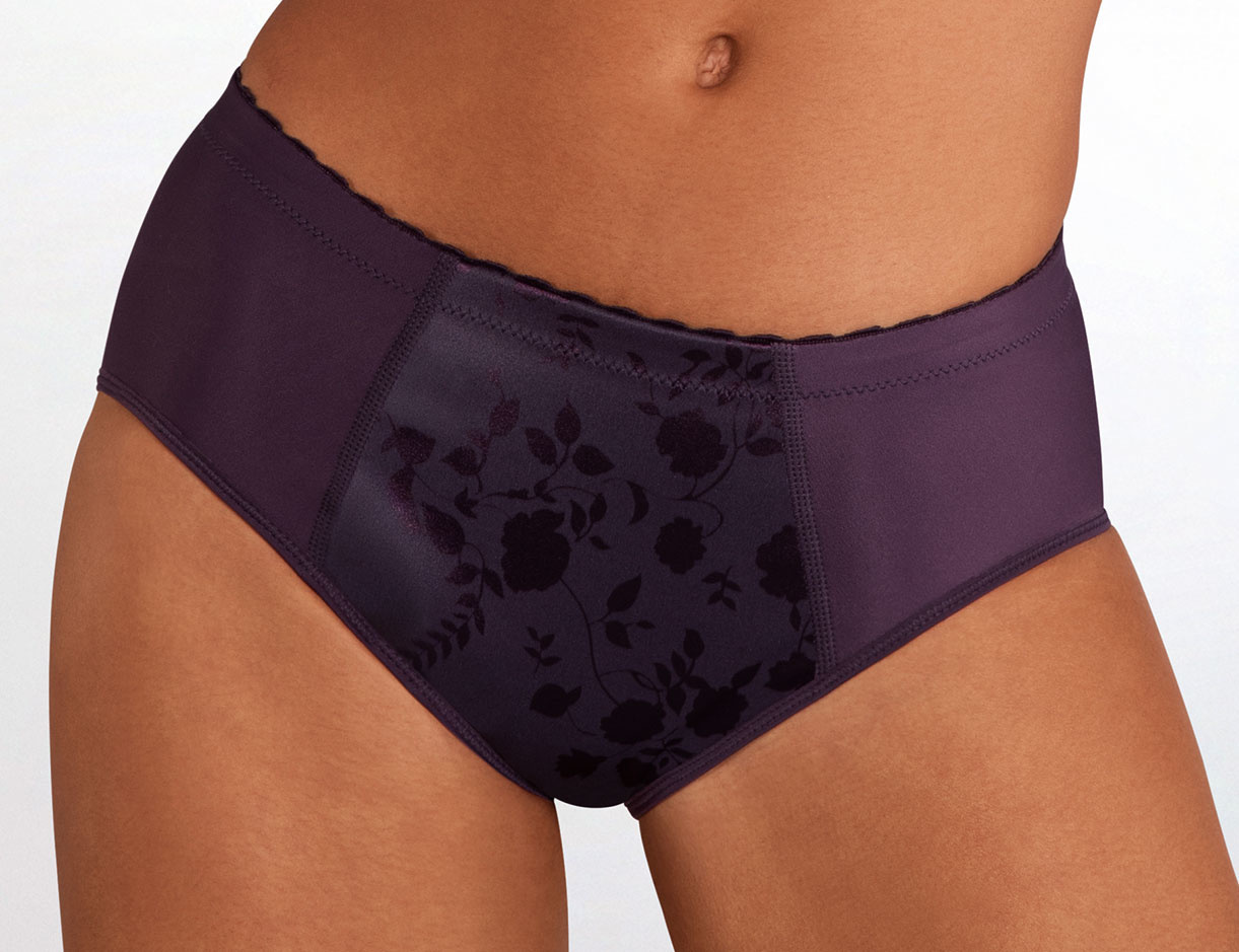 Naturana Lydia microfaser maxislip met aan voorkant in stof ingeweven print bloem.Maten 70-M,75-L,80-XL,85-2XL & 90-3XL ,basis tinten wit, zwart, huid, champagne of mode kleur, aubergine,grijs of soft pink.