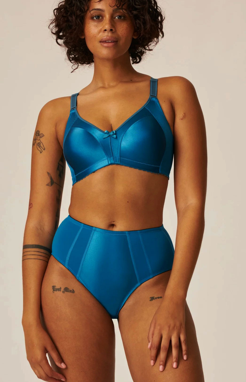 Uit de collectie van Naturana: de Faylinne minimizer bh zonder beugel, uitgevoerd in een gladde cup en de prachtige modetint Mykonos blauw — een frisse, moderne kleur die direct opvalt.