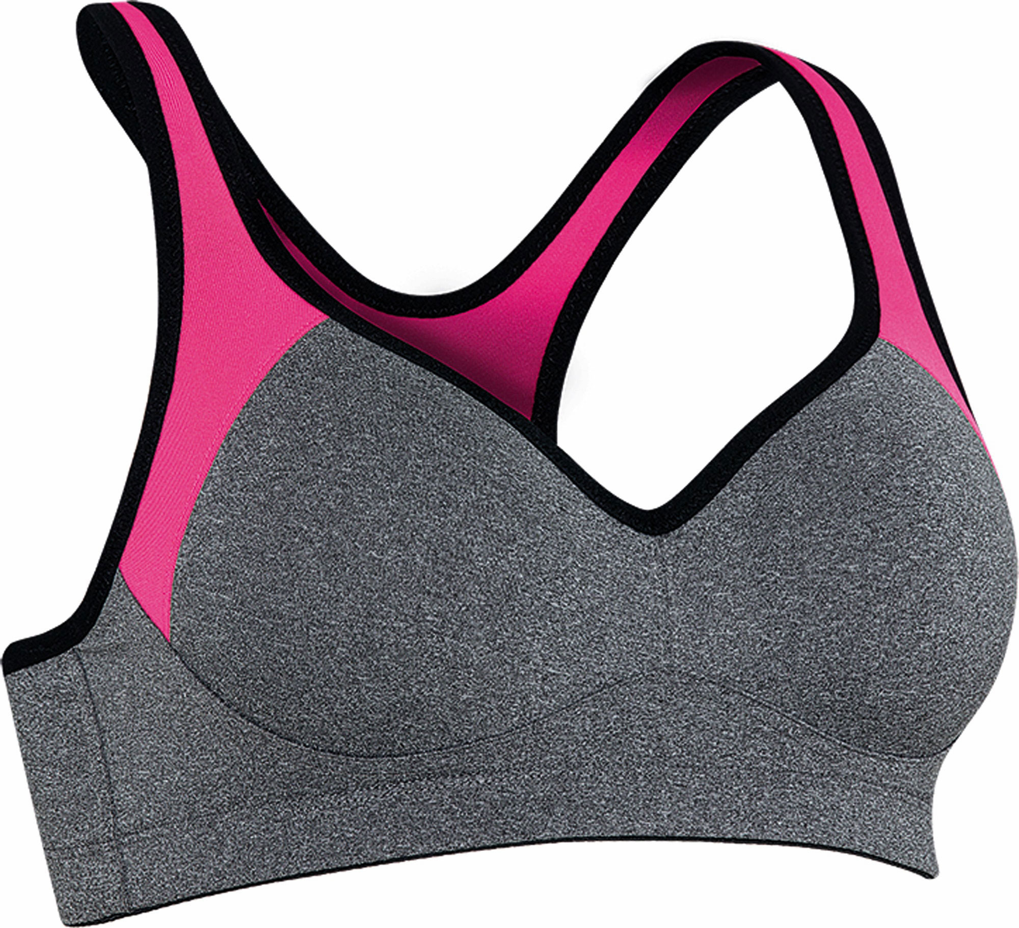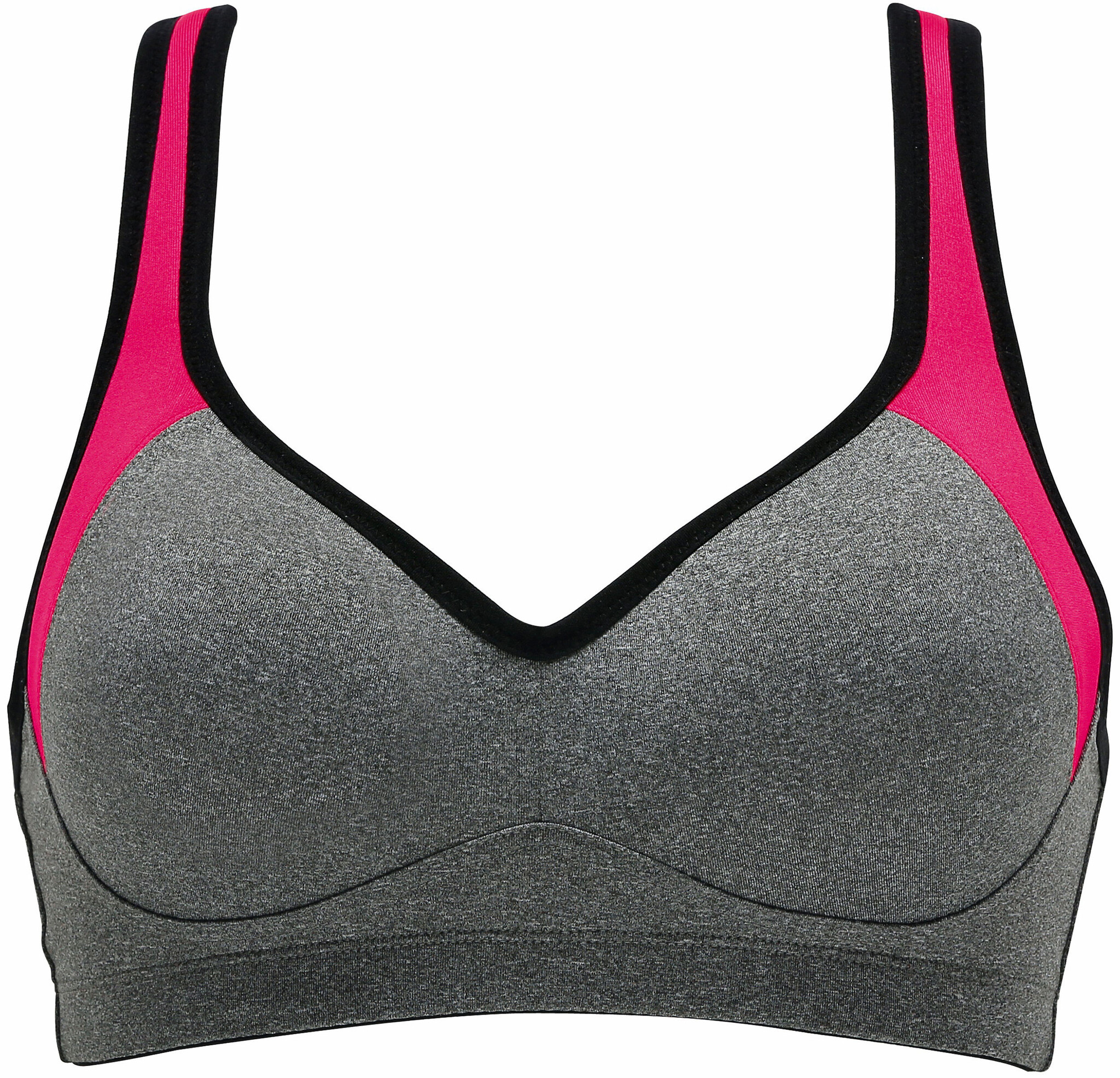 Naturana naadloos voorgevormde sportbh in high support level zonder beugel kleur grijs met pink kleurige bies de maat B90.