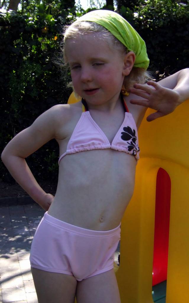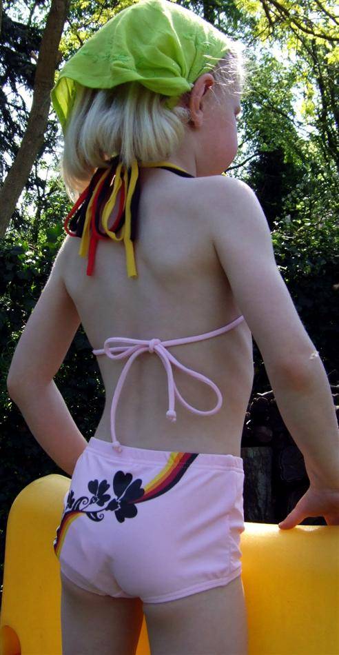 Uit de collectie van Nickey Nobel deze leuke meisjes halterbikini in hoofdkleur roze met print in kleur bruin op de linkercup & de achterkant van de short. Zowel shortje als topje geheel tegengevoerd Nog leverbaar in de maten 116, 128,164 & 176.
