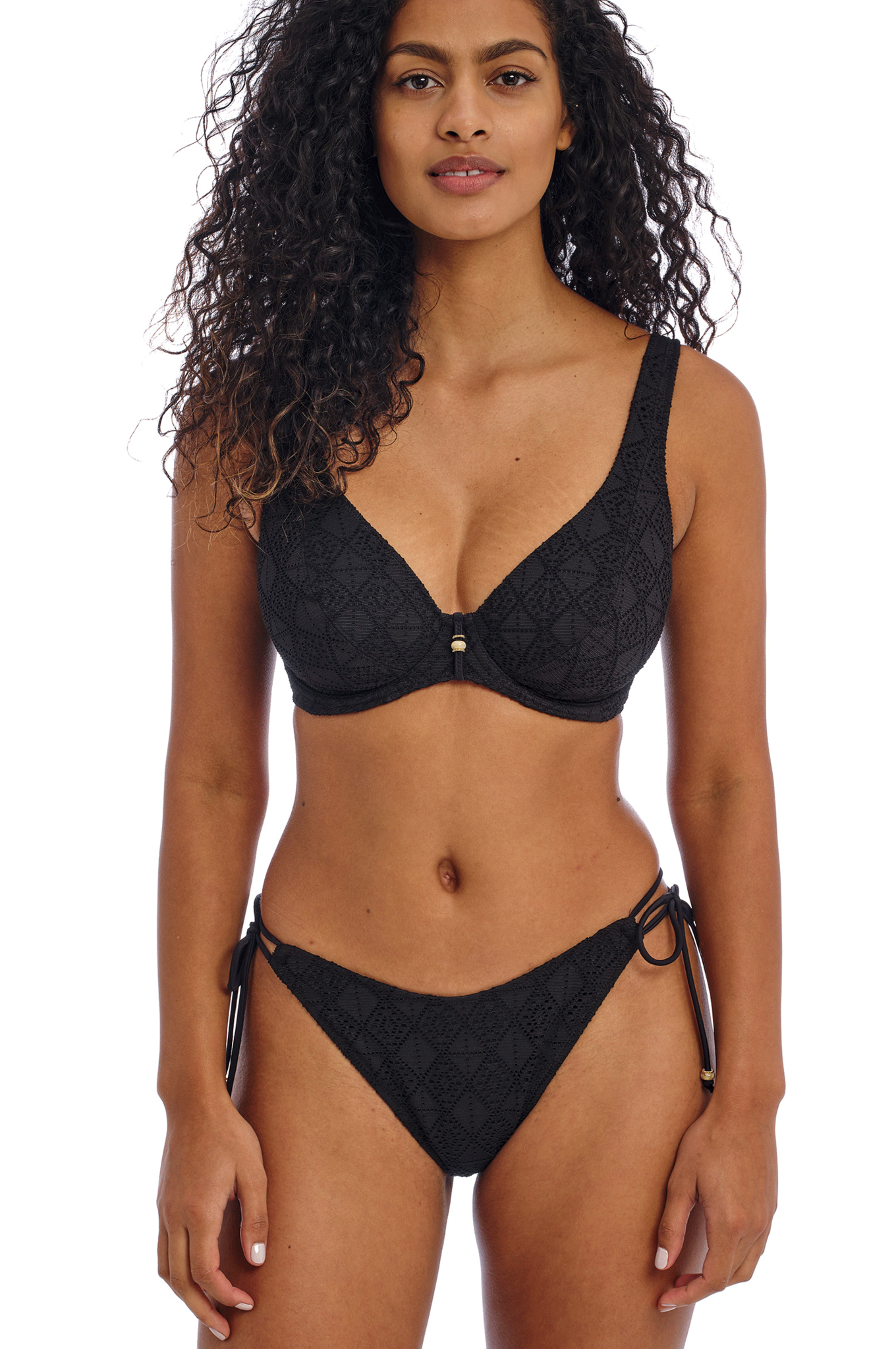 Freya Nomad Night high apex bikinitop met beugel kleur zwart gecombineerd met elastisch borduursel - Copy
