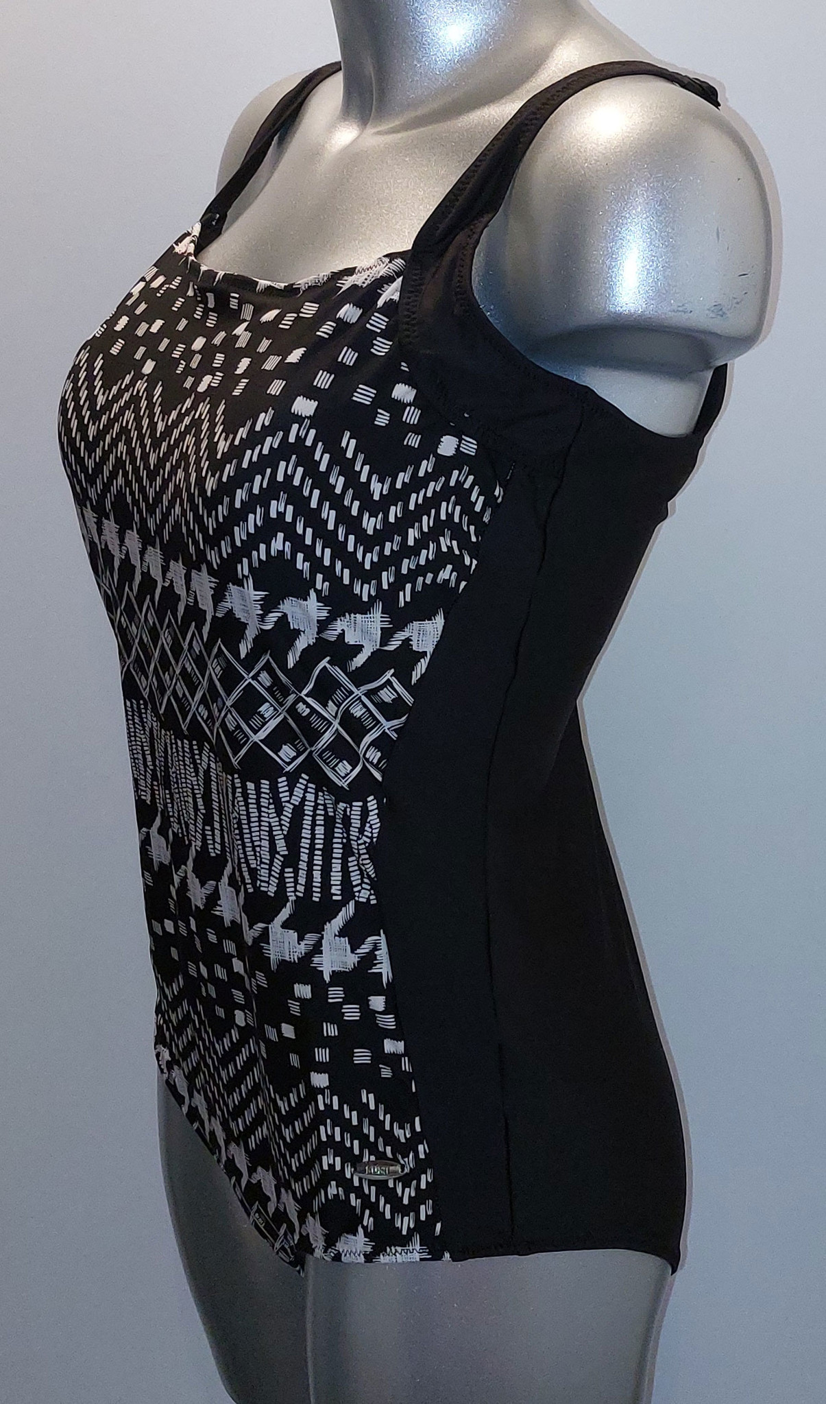 Nieuw uit de Susa Care badmodecollectie het Yofreisy prothese badpak zonder beugel & licht voorgevormde cups. Hoofdkleur zwart met aan voorzijde een mooie witte tijdloze print.Leverbaar in de maten C44=cupmt C90.