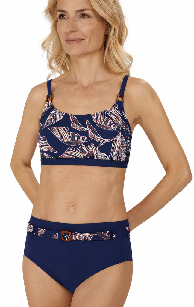 Lanzarote prothese bikinitop in bandeau model zonder beugel kleur navy met print