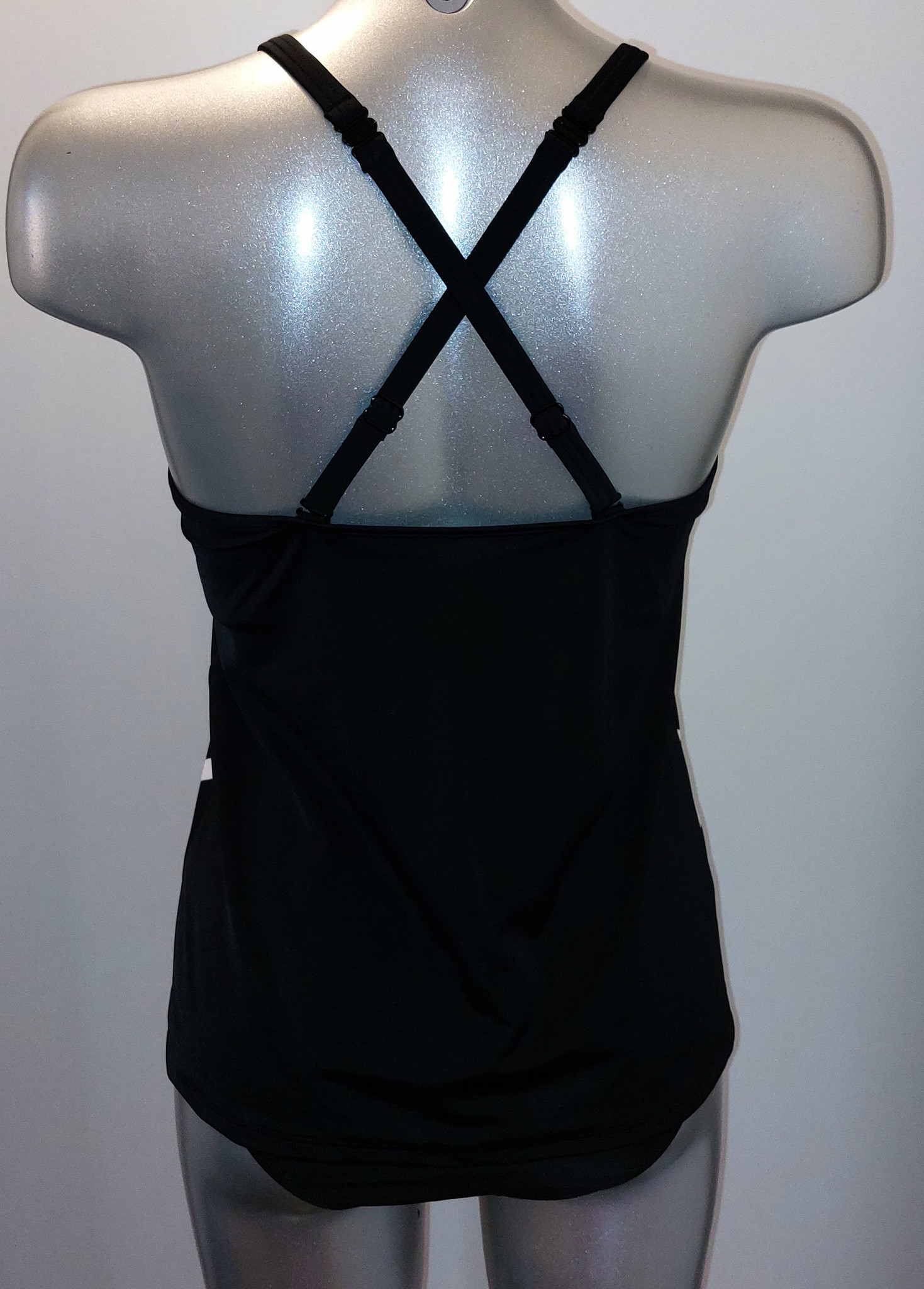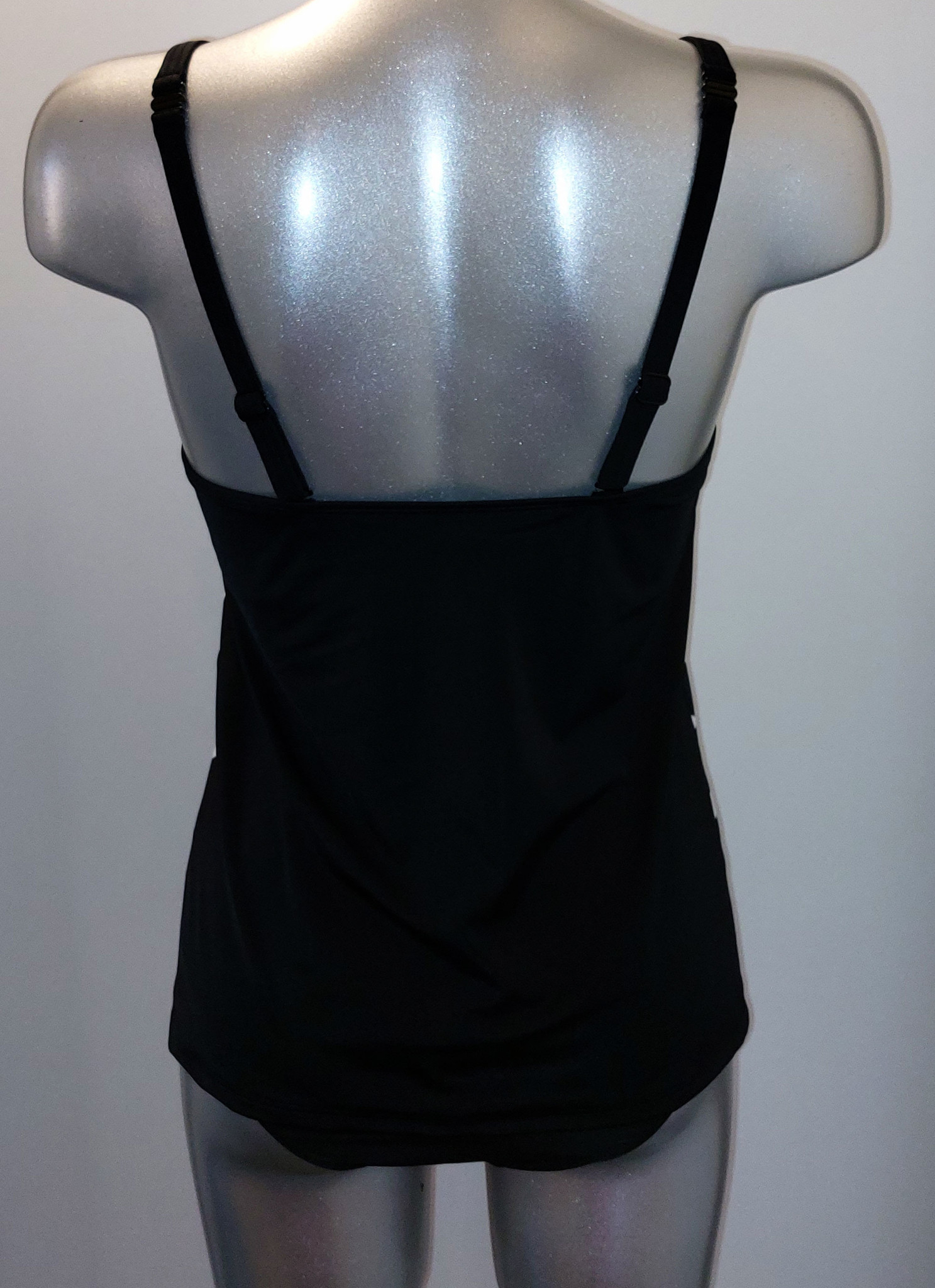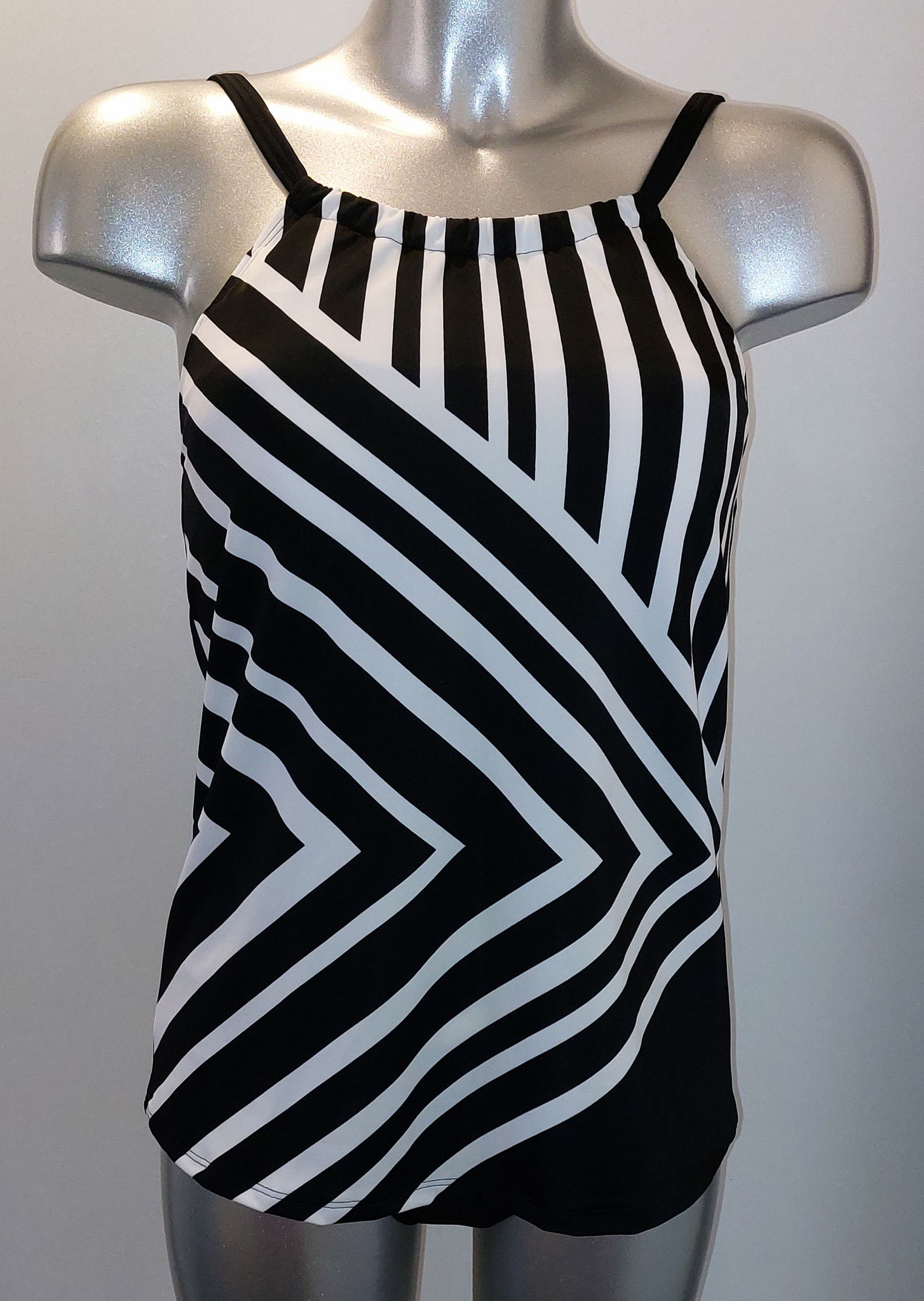 Uit de Amoena Care collectie de stijlvolle prothese tankinitop Andalusia zonder beugel & licht voorgevormde cup de maten B38/cupmt B75 t/m B46 is cupmt B95, de kleurencombinatie zwart met wit. Te dragen tijdens het zwemmen maar ook heel leuk om te dragen als top.
