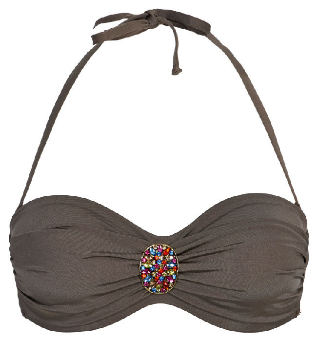 Uit de Sapph Beach collectie de Anise bandeau bikinitop met beugel & uitneembare onderpadding. Kleur taupe met als mooi detail het afneembare sieraad aan voorzijde.Leverbaar in de maten C85 & mt E70 t/m E75.
