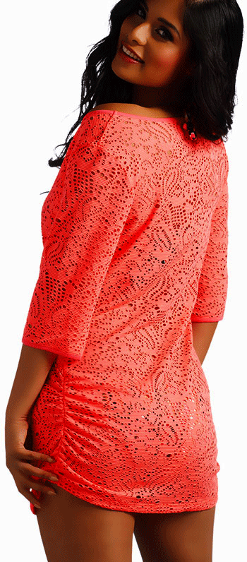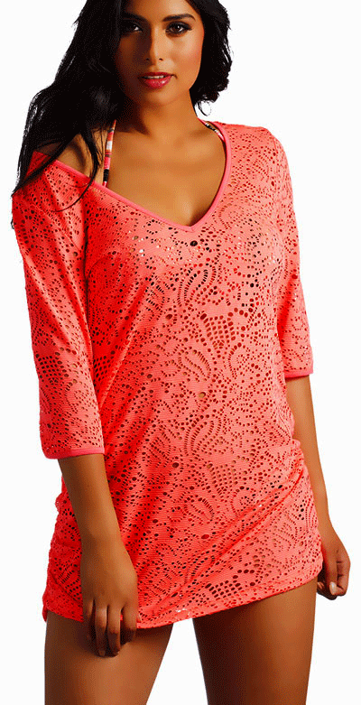 Uit de Sapph Beach collectie de Bonaire tuniek in flashy kleur grapefruit.Deze tuniek perfect te combineren over de mooie Ipanema bikini.De maten S of L.