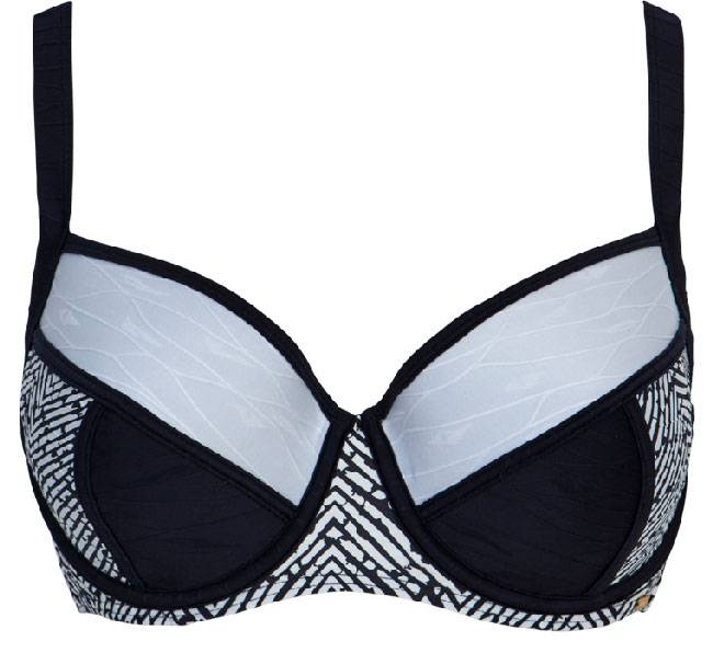Uit de Sapph Beach collectie speciaal voor de dame met een maatje meer de stijlvolle Phi Phi Island bikinitop met beugel & voorgevormde cup kleur zwart met wit gecombineerd. Leverbaar in de maten E85- valt als mt D85 & F85- valt als een mt E85 of mt G75 die valt als een mt F75.