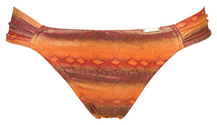 Uit de Sapph Beach collectie de Cinnamon butterfly bikinislip kleur oranje met licht glanzende snakeprint. Leverbaar in de maat XL.