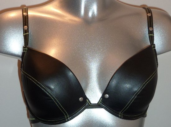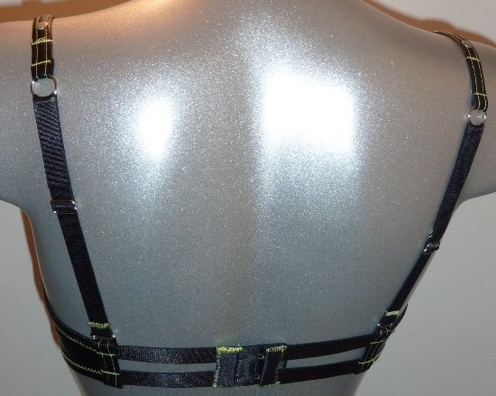 Uit de Sapph Sale collectie de Extrema Bh met licht voorgevormde cup & multiway schouderbandjes in lederlook uitvoering.Nog leverbaar in de maat E70 kleur zwart met limekleurig sierstiksel.